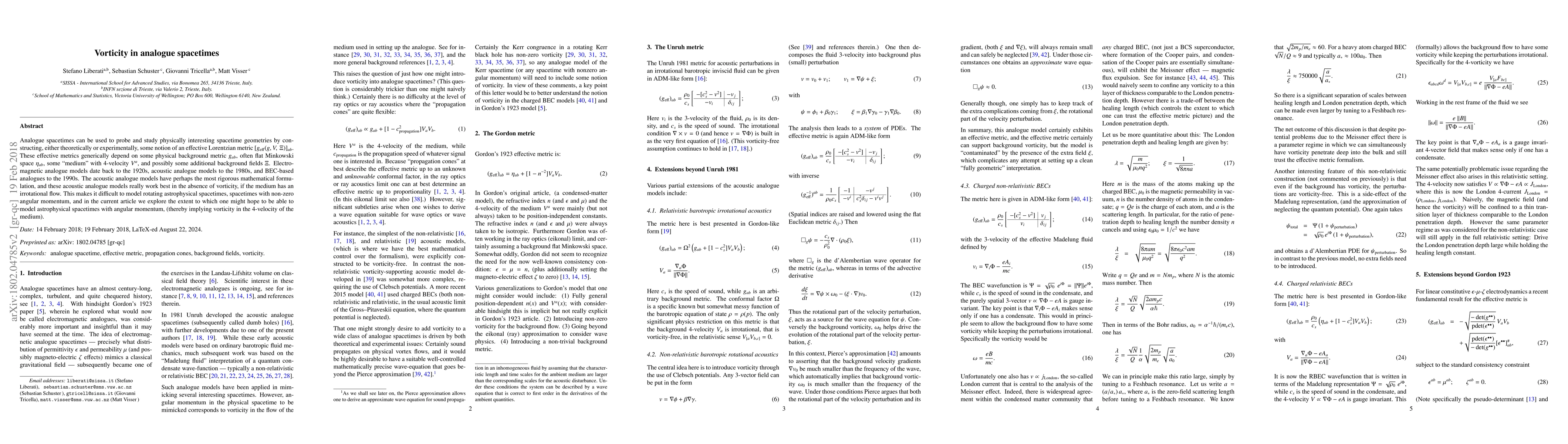 Analogue spacetimes can be used to probe and study physically interesting spacetime geometries by constructing, either theoretically or experimentally, some notion of an effective Lorentzian metric $[g_\mathrm{eff}(g,V,\,\Xi)]_{ab}$. These effective metrics generically depend on some physical background metric $g_{ab}$, often flat Minkowski space $\eta_{ab}$, some "medium" with 4-velocity $V^a$, and possibly some additional background fields $\Xi$. Electromagnetic analogue models date back to the 1920s, acoustic analogue models to the 1980s, and BEC-based analogues to the 1990s. The acoustic analogue models have perhaps the most rigorous mathematical formulation, and these acoustic analogue models really work best in the absence of vorticity, if the medium has an irrotational flow. This makes it difficult to model rotating astrophysical spacetimes, spacetimes with non-zero angular momentum, and in the current article we explore the extent to which one might hope to be able to model astrophysical spacetimes with angular momentum, (thereby implying vorticity in the 4-velocity of the medium).