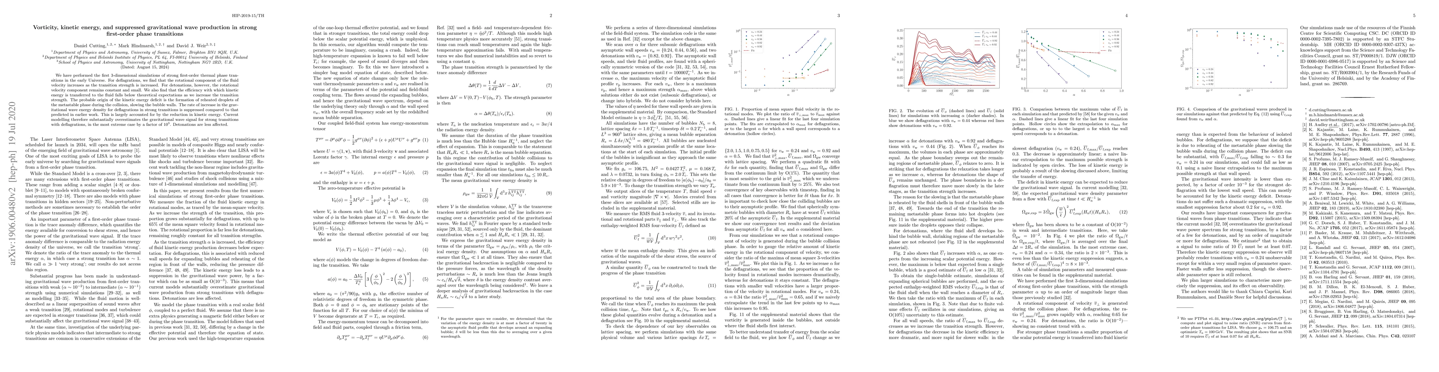 Simulations of strong first-order phase transitions in the early Universe found that rotational velocity increases with transition strength for deflagrations but remains constant for detonations, leading to a significant underestimation of gravitational wave signals.