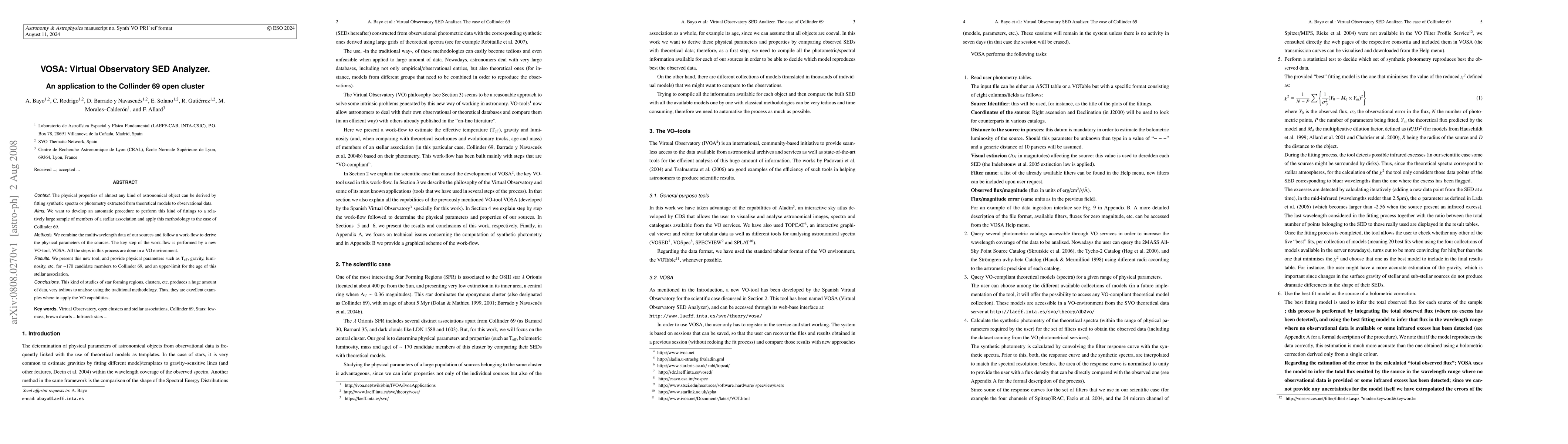 The physical properties of almost any kind of astronomical object can be derived by fitting synthetic spectra or photometry extracted from theoretical models to observational data. We want to develop an automatic procedure to perform this kind of fittings to a relatively large sample of members of a stellar association and apply this methodology to the case of Collinder 69. We combine the multiwavelength data of our sources and follow a work-flow to derive the physical parameters of the sources. The key step of the work-flow is performed by a new VO-tool, VOSA. All the steps in this process are done in a VO environment. We present this new tool, and provide physical parameters such as T$_{\rm eff}$, gravity, luminosity, etc. for $\sim$170 candidate members to Collinder 69, and an upper-limit for the age of this stellar association. This kind of studies of star forming regions, clusters, etc. produces a huge amount of data, very tedious to analyse using the traditional methodology. Thus, they are excellent examples where to apply the VO capabilities.