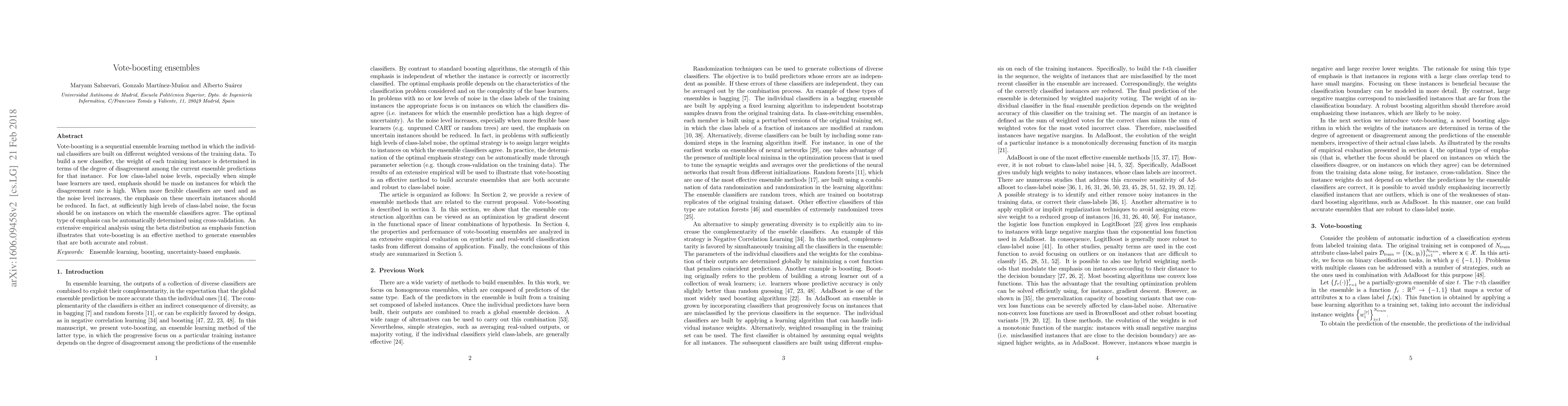 Vote-boosting is a sequential ensemble learning technique that adjusts the weights of training instances based on ensemble disagreement, optimizing performance for low noise levels and adapting to higher class-label noise by focusing on instances where classifiers agree. Empirical analysis shows it effectively generates accurate and robust ensembles.