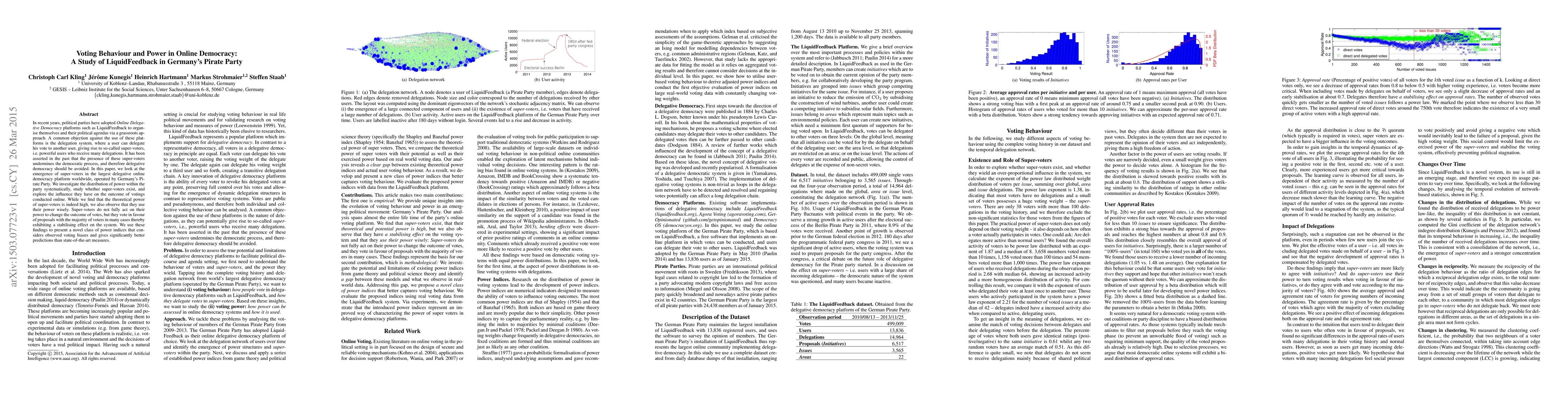 This paper examines the power dynamics within Germany's Pirate Party using the LiquidFeedback platform, finding that while super-voters possess significant influence, they often vote in line with majority opinions, thus stabilizing the democratic process. The study introduces new power indices that better predict voting outcomes by accounting for observed biases.