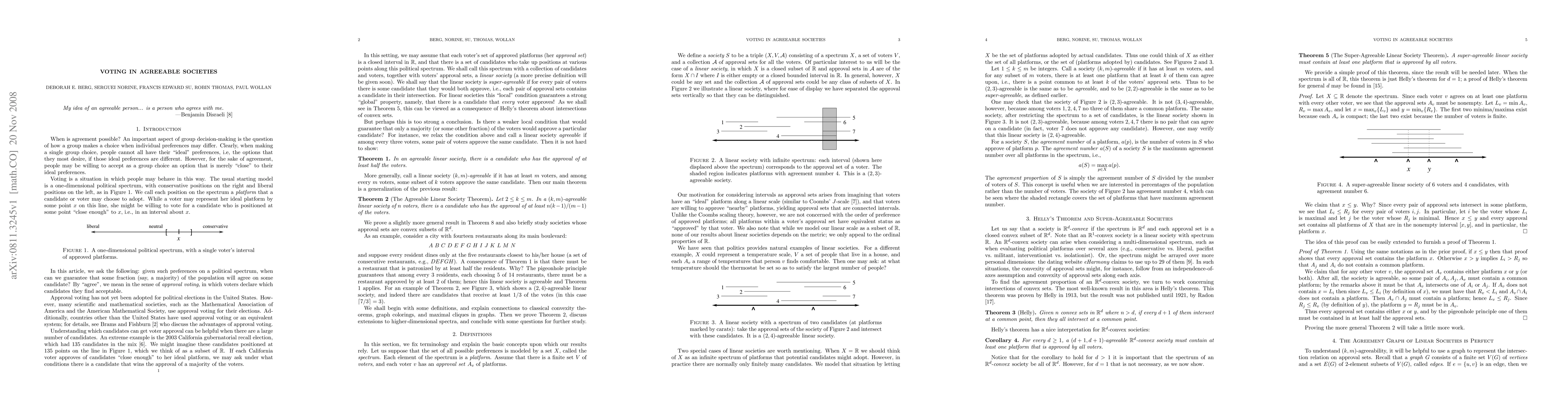 Researchers developed mathematical models to analyze voting in societies where voters can find common ground, exploring how the political spectrum influences outcomes. They applied classical theorems to create new insights into "agreeable" societies.