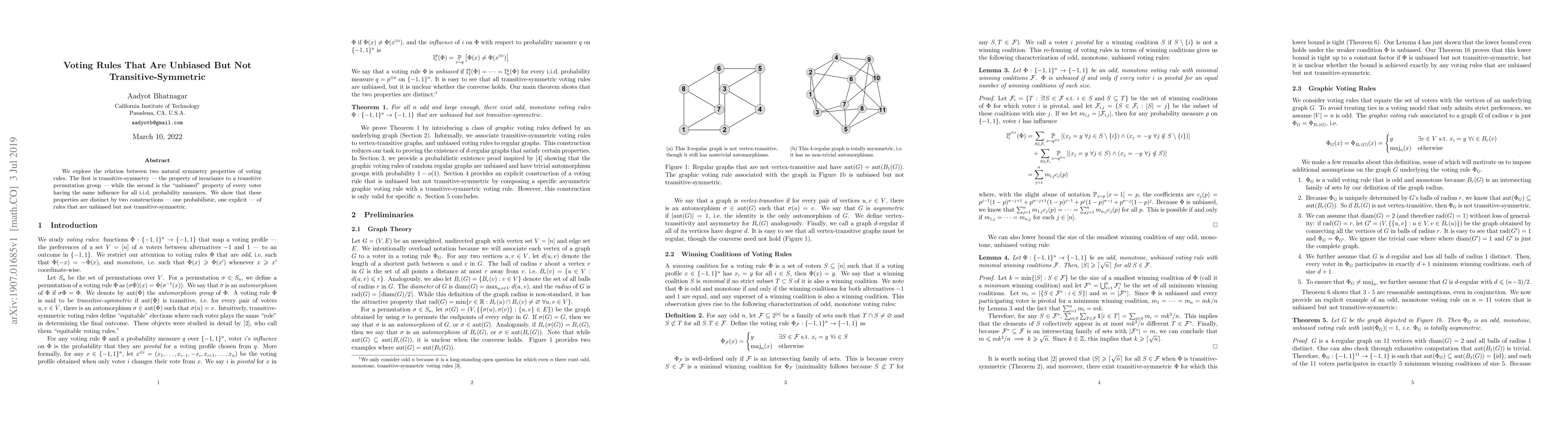 Research finds that unbiased voting rules can exist without being transitive-symmetric, highlighting distinct properties of these rules in probabilistic and explicit constructions.