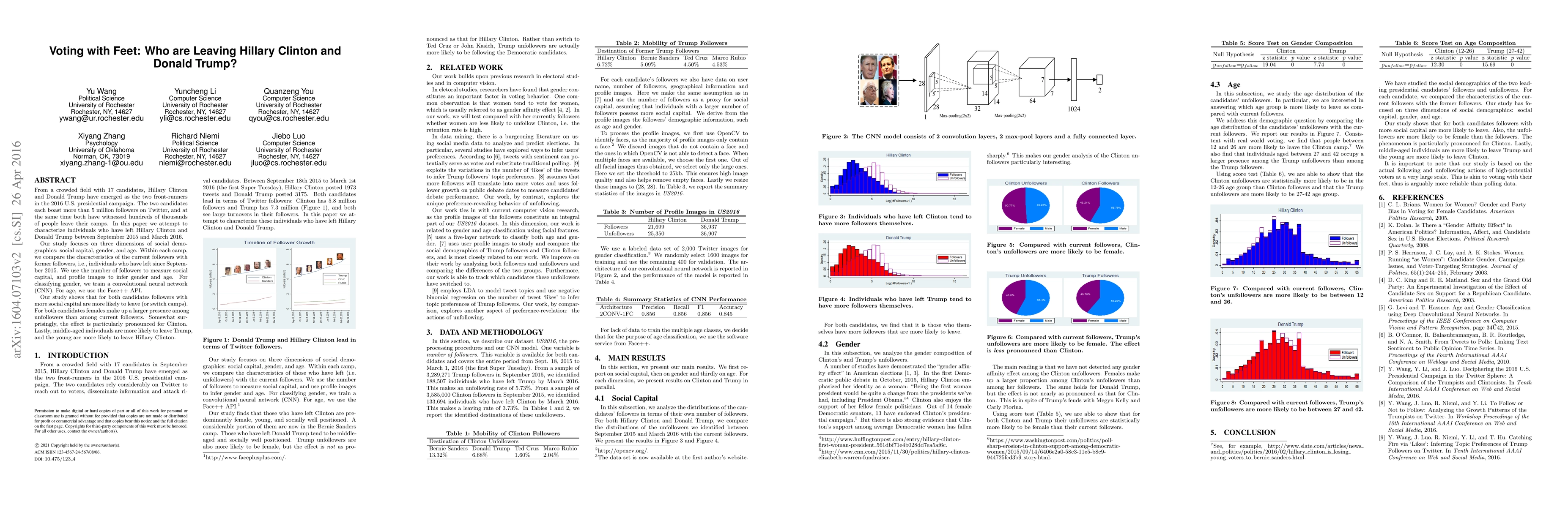 From a crowded field with 17 candidates, Hillary Clinton and Donald Trump have emerged as the two front-runners in the 2016 U.S. presidential campaign. The two candidates each boast more than 5 million followers on Twitter, and at the same time both have witnessed hundreds of thousands of people leave their camps. In this paper we attempt to characterize individuals who have left Hillary Clinton and Donald Trump between September 2015 and March 2016. Our study focuses on three dimensions of social demographics: social capital, gender, and age. Within each camp, we compare the characteristics of the current followers with former followers, i.e., individuals who have left since September 2015. We use the number of followers to measure social capital, and profile images to infer gender and age. For classifying gender, we train a convolutional neural network (CNN). For age, we use the Face++ API. Our study shows that for both candidates followers with more social capital are more likely to leave (or switch camps). For both candidates females make up a larger presence among unfollowers than among current followers. Somewhat surprisingly, the effect is particularly pronounced for Clinton. Lastly, middle-aged individuals are more likely to leave Trump, and the young are more likely to leave Hillary Clinton.