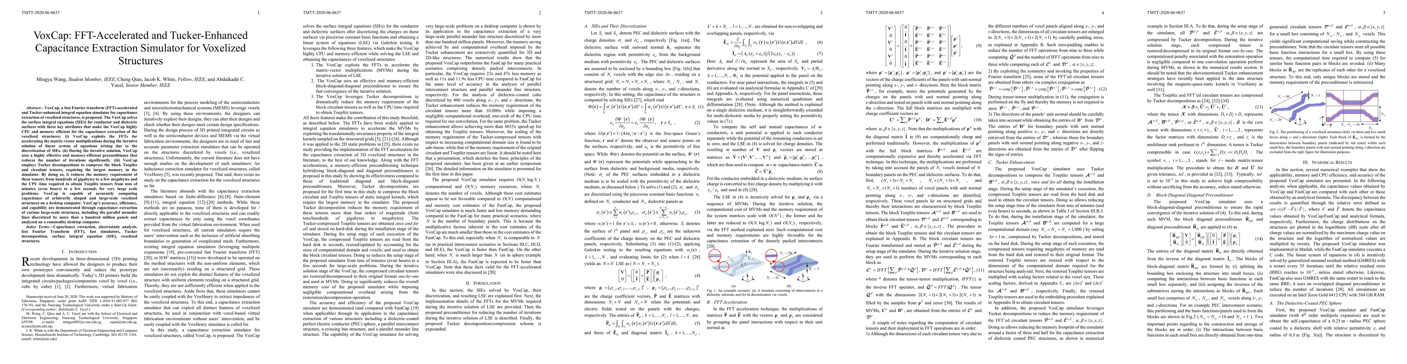 VoxCap is an FFT-accelerated and Tucker-enhanced simulator for efficient capacitance extraction in voxelized structures, significantly reducing CPU and memory requirements through advanced numerical techniques. It leverages FFTs, an effective preconditioner, and Tucker decomposition to achieve rapid and accurate computations.