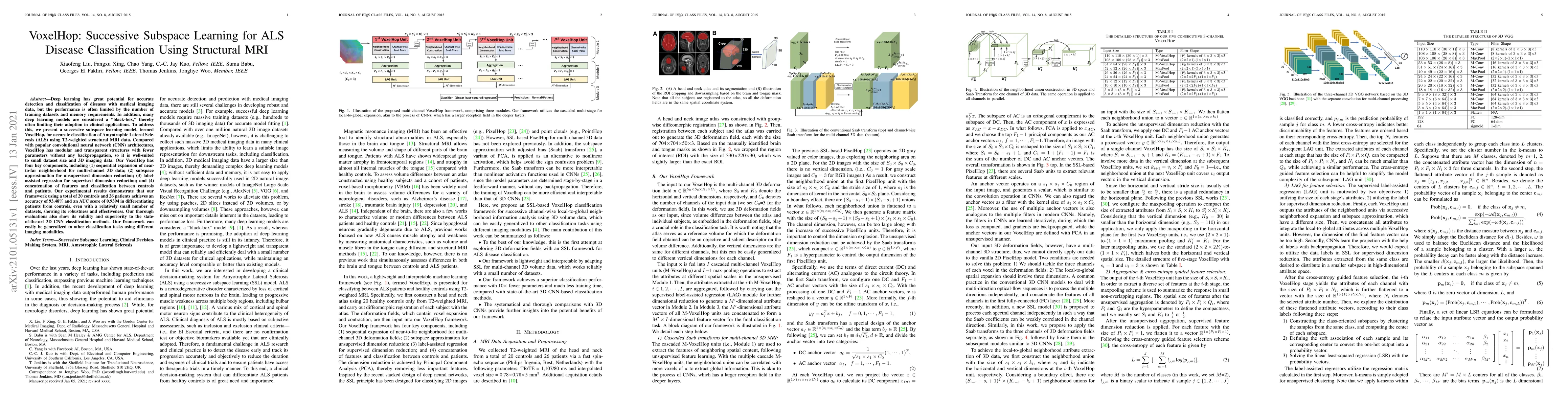 A new deep learning model called VoxelHop improves ALS disease classification from T2-weighted structural MRI data with high accuracy and minimal parameters.