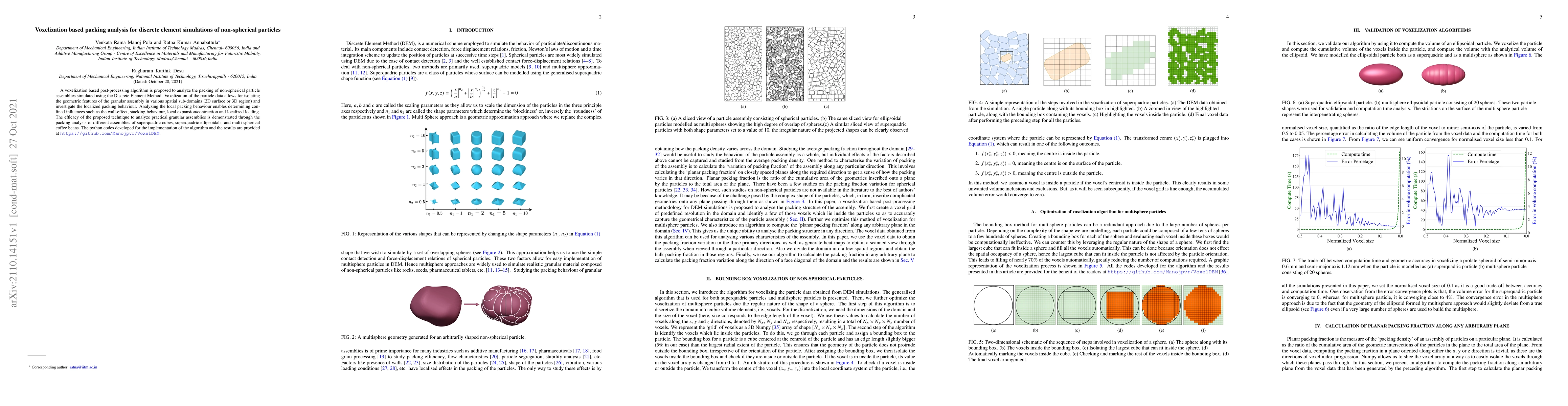 This paper proposes a voxelization-based post-processing algorithm to analyze the packing of non-spherical particles in Discrete Element Method simulations. The method isolates geometric features and local packing behaviors to study wall-effects, stacking, and localized loading.