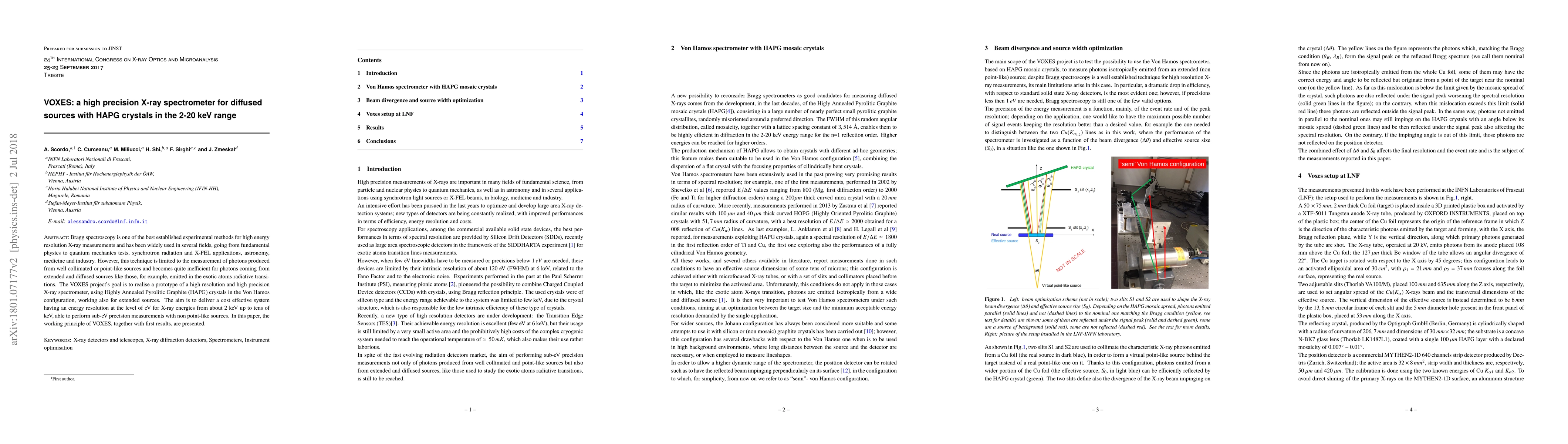 The VOXES project aims to develop a high-precision X-ray spectrometer using HAPG crystals for diffused sources, achieving eV-level resolution from 2 to 20 keV. Initial results demonstrate the feasibility of this cost-effective system for sub-eV precision measurements with non-point-like photon sources.