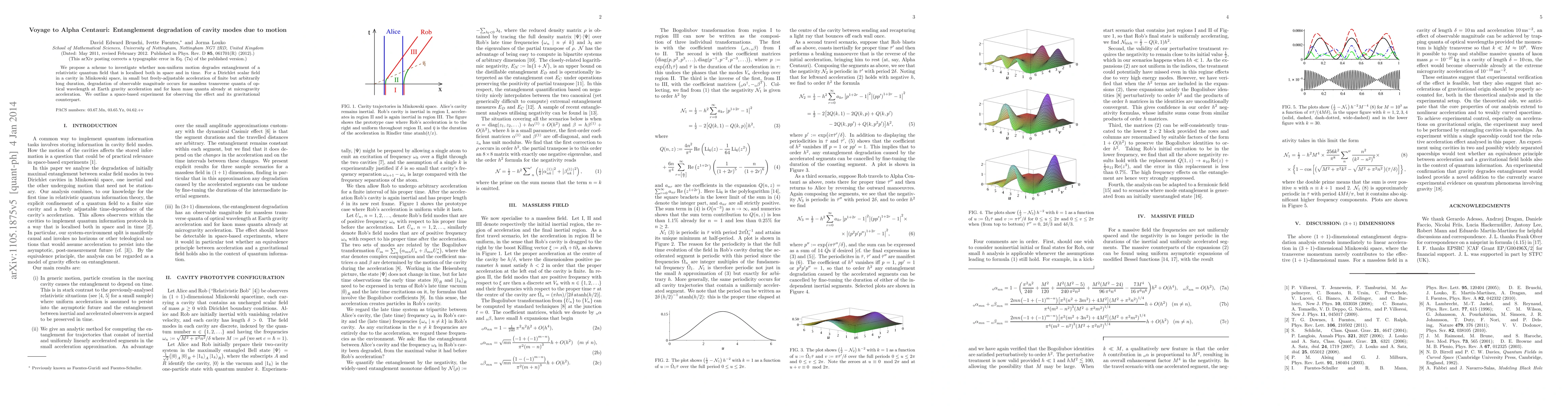 We propose a scheme to investigate whether non-uniform motion degrades entanglement of a relativistic quantum field that is localised both in space and in time. For a Dirichlet scalar field in a cavity in Minkowski space, in small but freely-adjustable acceleration of finite but arbitrarily long duration, degradation of observable magnitude occurs for massless transverse quanta of optical wavelength at Earth gravity acceleration and for kaon mass quanta already at microgravity acceleration. We outline a space-based experiment for observing the effect and its gravitational counterpart.