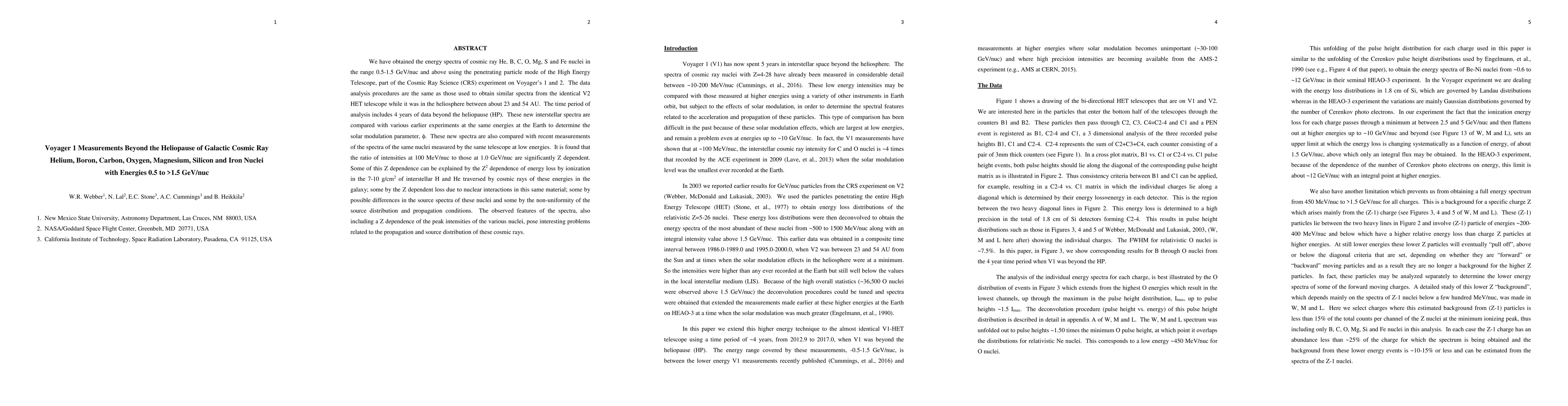 This study presents Voyager 1 measurements of cosmic ray nuclei (He, B, C, O, Mg, Si, Fe) beyond the heliopause, analyzing spectra from 0.5 to >1.5 GeV/nuc. The findings reveal significant Z-dependent intensity ratios and suggest various factors influencing these ratios, including ionization energy loss, nuclear interactions, source spectra, and propagation conditions.
