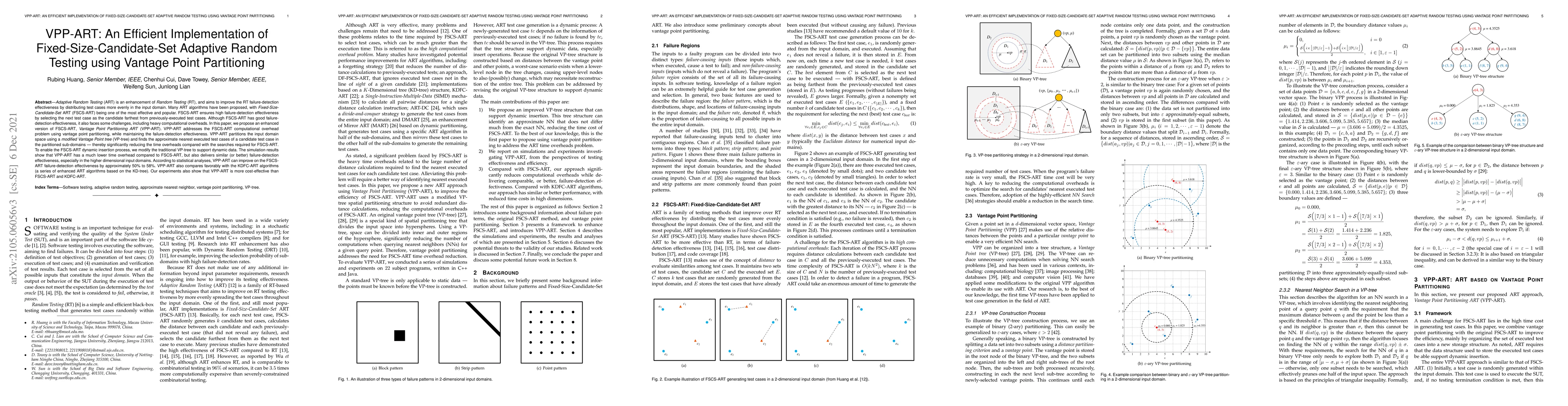 This paper proposes VPP-ART, an efficient implementation of Fixed-Size-Candidate-Set Adaptive Random Testing using Vantage Point Partitioning, to address the computational overheads of FSCS-ART while maintaining or improving failure-detection effectiveness. VPP-ART partitions the input domain using a modified VP-tree, reducing search time and demonstrating significant performance improvements over FSCS-ART and KDFC-ART.