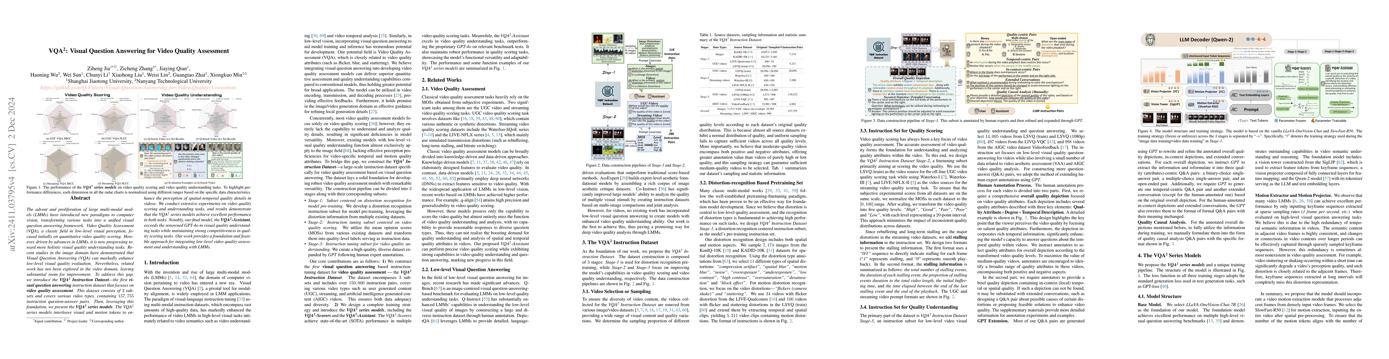The paper introduces VQA2, a visual question answering framework for video quality assessment, utilizing a new instruction dataset and achieving state-of-the-art results in both video quality scoring and understanding tasks, outperforming existing models like GPT-4o.
