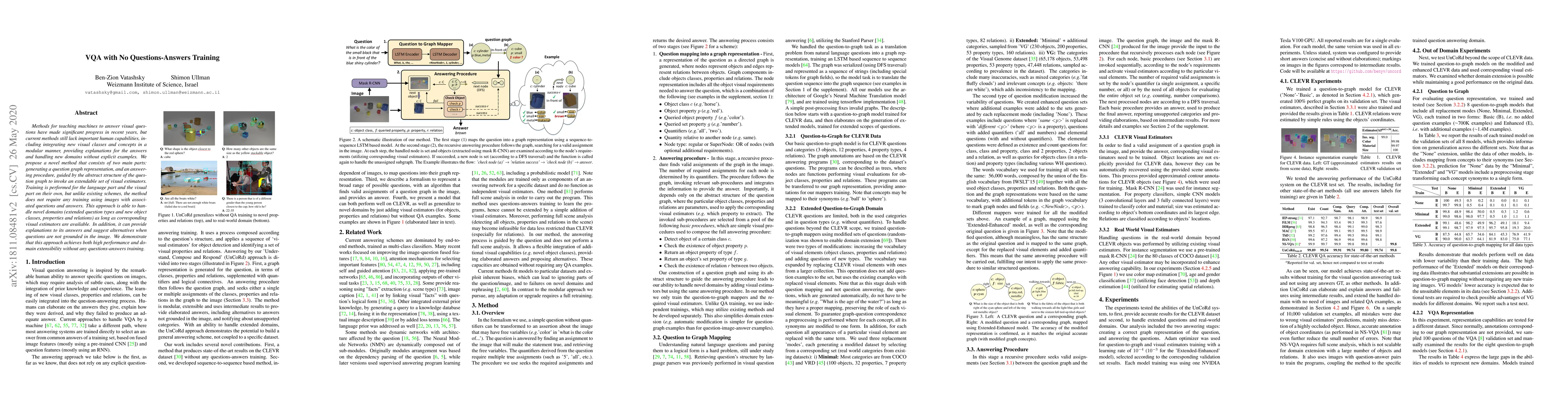 This paper proposes a novel method for visual question answering (VQA) that does not require training on question-answer pairs. It utilizes a question graph representation and an extendable set of visual estimators, achieving high performance and domain extensibility by training the language and visual components separately.