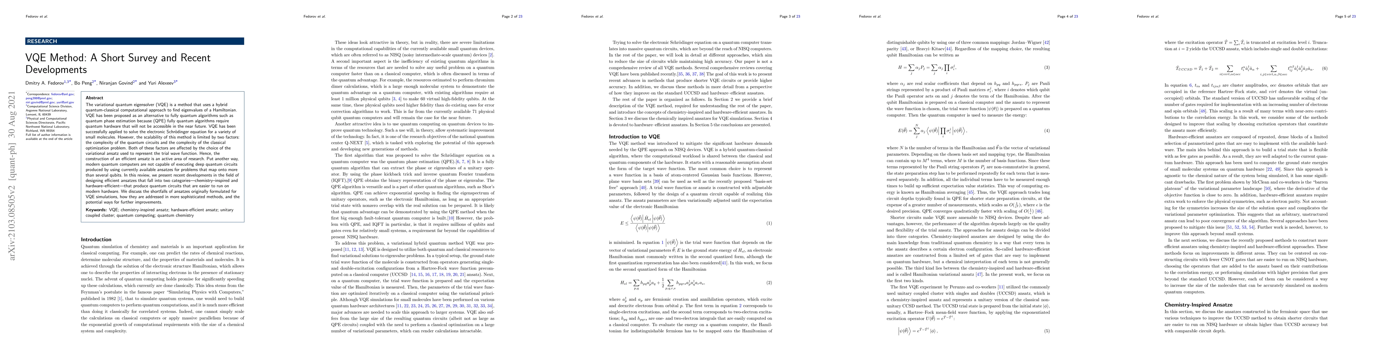 The variational quantum eigensolver (VQE) is a method that uses a hybrid quantum-classical computational approach to find eigenvalues and eigenvalues of a Hamiltonian. VQE has been proposed as an alternative to fully quantum algorithms such as quantum phase estimation because fully quantum algorithms require quantum hardware that will not be accessible in the near future. VQE has been successfully applied to solve the electronic Schr\"{o}dinger equation for a variety of small molecules. However, the scalability of this method is limited by two factors: the complexity of the quantum circuits and the complexity of the classical optimization problem. Both of these factors are affected by choice of the variational ansatz used to represent the trial wave function. Hence, the construction of efficacious ansatz is an active area of research. Put another way, modern quantum computers are not capable of executing deep quantum circuits produced by using currently available ansatze for problems that map onto more than several qubits. In this review, we present recent developments in the field of designing effective ansatzes that fall into two categories -- chemistry inspired and hardware efficient -- that produce quantum circuits that are easier to run on modern hardware. We discuss the shortfalls of ansatzes originally formulated for VQE simulations, how they are addressed in more sophisticated methods, and the potential ways for further improvements.
