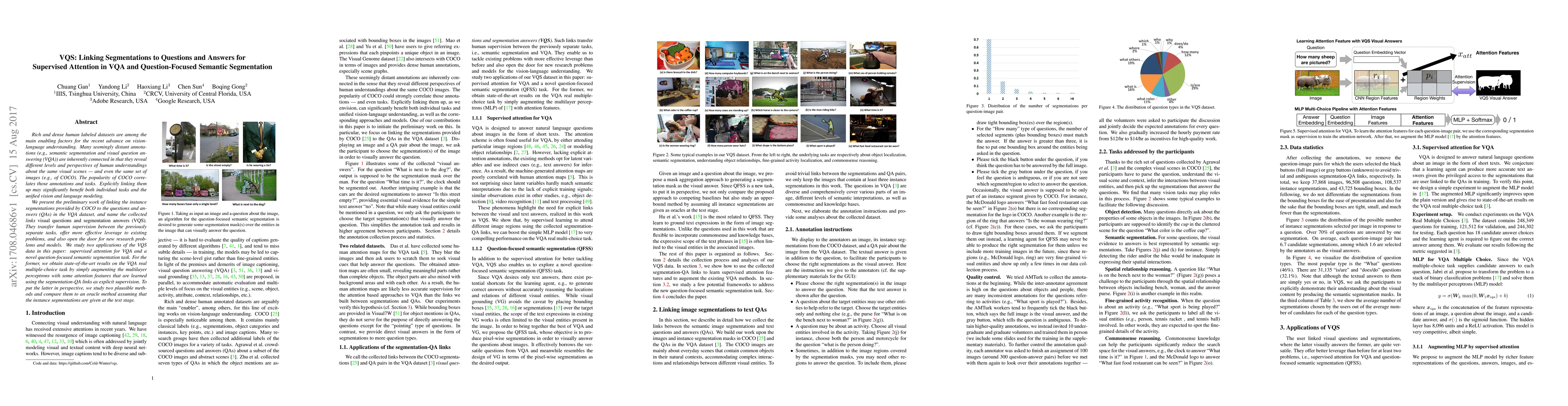 This paper introduces VQS, a method that links segmentations to questions and answers for supervised attention in VQA and question-focused semantic segmentation, achieving state-of-the-art results on VQA and exploring new research problems.