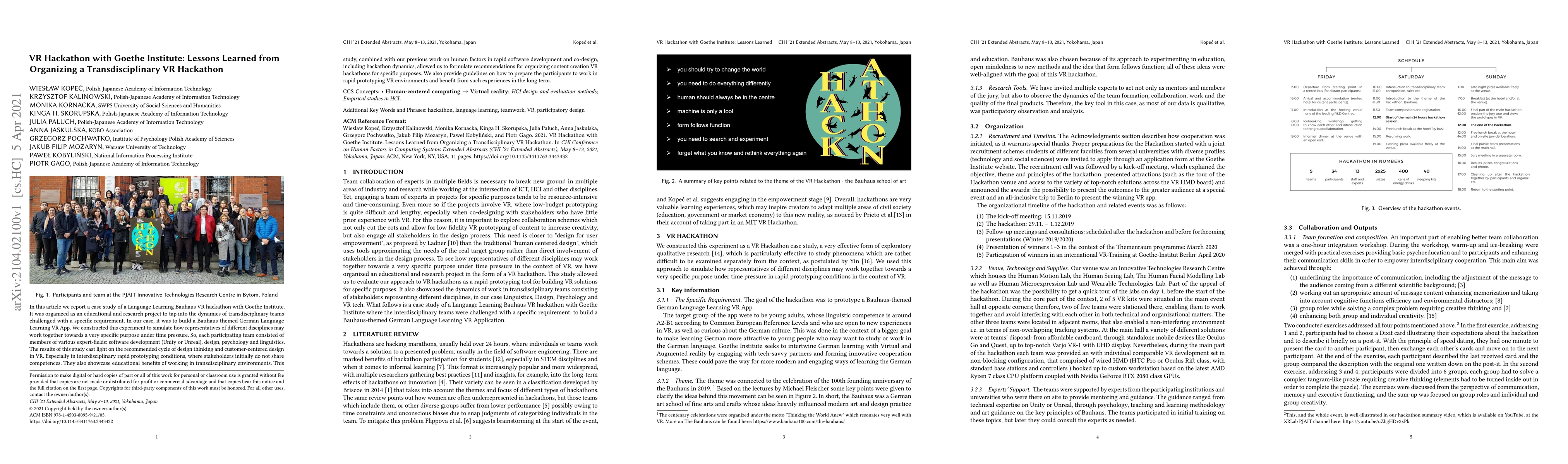 In this article we report a case study of a Language Learning Bauhaus VR hackathon with Goethe Institute. It was organized as an educational and research project to tap into the dynamics of transdisciplinary teams challenged with a specific requirement. In our case, it was to build a Bauhaus-themed German Language Learning VR App. We constructed this experiment to simulate how representatives of different disciplines may work together towards a very specific purpose under time pressure. So, each participating team consisted of members of various expert-fields: software development (Unity or Unreal), design, psychology and linguistics. The results of this study cast light on the recommended cycle of design thinking and customer-centered design in VR. Especially in interdisciplinary rapid prototyping conditions, where stakeholders initially do not share competences. They also showcase educational benefits of working in transdisciplinary environments. This study, combined with our previous work on human factors in rapid software development and co-design, including hackathon dynamics, allowed us to formulate recommendations for organizing content creation VR hackathons for specific purposes. We also provide guidelines on how to prepare the participants to work in rapid prototyping VR environments and benefit from such experiences in the long term.