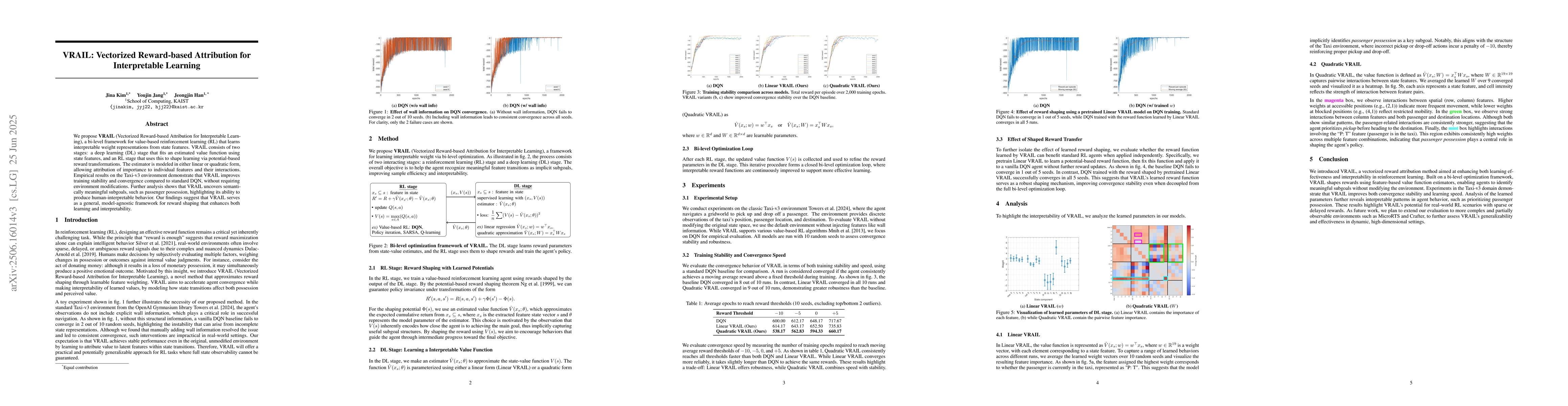 We propose VRAIL (Vectorized Reward-based Attribution for Interpretable Learning), a bi-level framework for value-based reinforcement learning (RL) that learns interpretable weight representations from state features. VRAIL consists of two stages: a deep learning (DL) stage that fits an estimated value function using state features, and an RL stage that uses this to shape learning via potential-based reward transformations. The estimator is modeled in either linear or quadratic form, allowing attribution of importance to individual features and their interactions. Empirical results on the Taxi-v3 environment demonstrate that VRAIL improves training stability and convergence compared to standard DQN, without requiring environment modifications. Further analysis shows that VRAIL uncovers semantically meaningful subgoals, such as passenger possession, highlighting its ability to produce human-interpretable behavior. Our findings suggest that VRAIL serves as a general, model-agnostic framework for reward shaping that enhances both learning and interpretability.