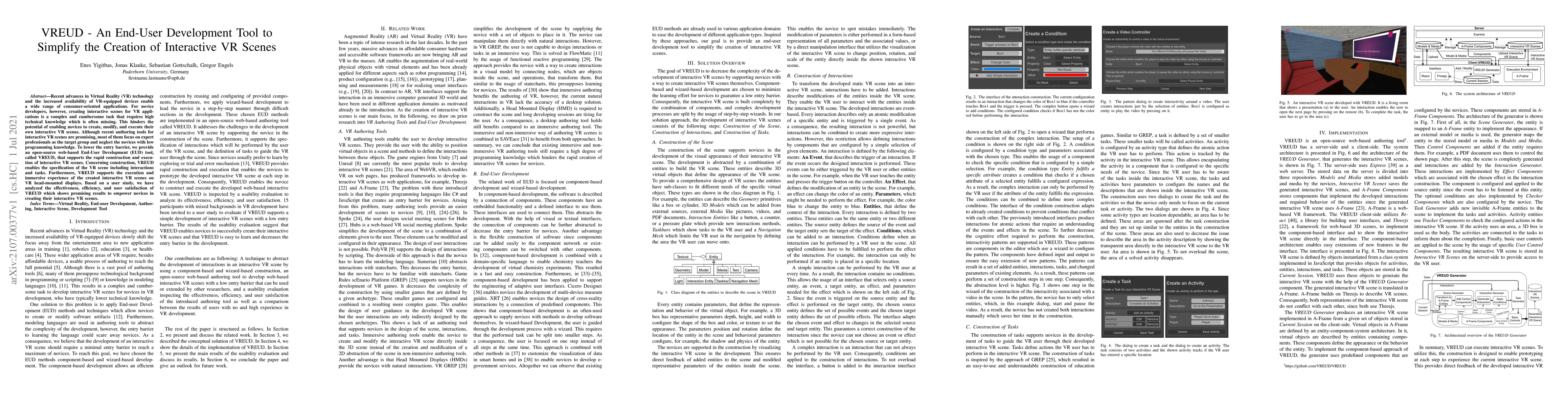 VREUD is an open-source web-based tool designed to simplify the creation of interactive VR scenes for novice developers. It enables rapid construction and immersive execution of VR scenes, showing promising results in user studies for effectiveness, efficiency, and user satisfaction.