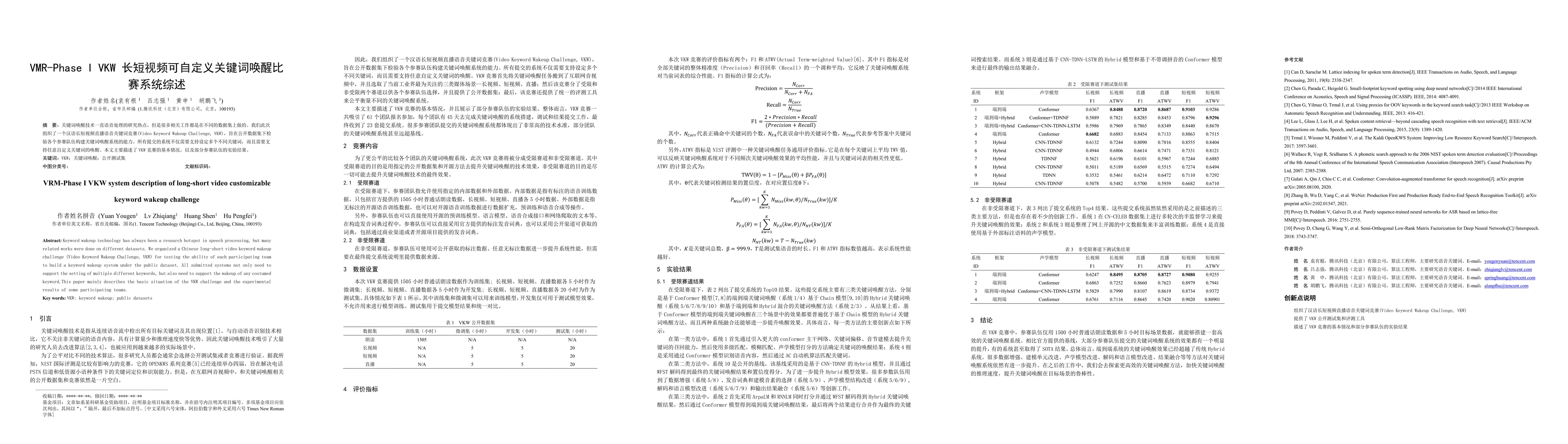 Keyword wakeup technology has always been a research hotspot in speech processing, but many related works were done on different datasets. We organized a Chinese long-short video keyword wakeup challenge (Video Keyword Wakeup Challenge, VKW) for testing the ability of each participating team to build a keyword wakeup system under the public dataset. All submitted systems not only need to support the setting of multiple different keywords, but also need to support the wakeup of any costumed keyword.This paper mainly describes the basic situation of the VKW challenge and the experimental results of some participating teams.