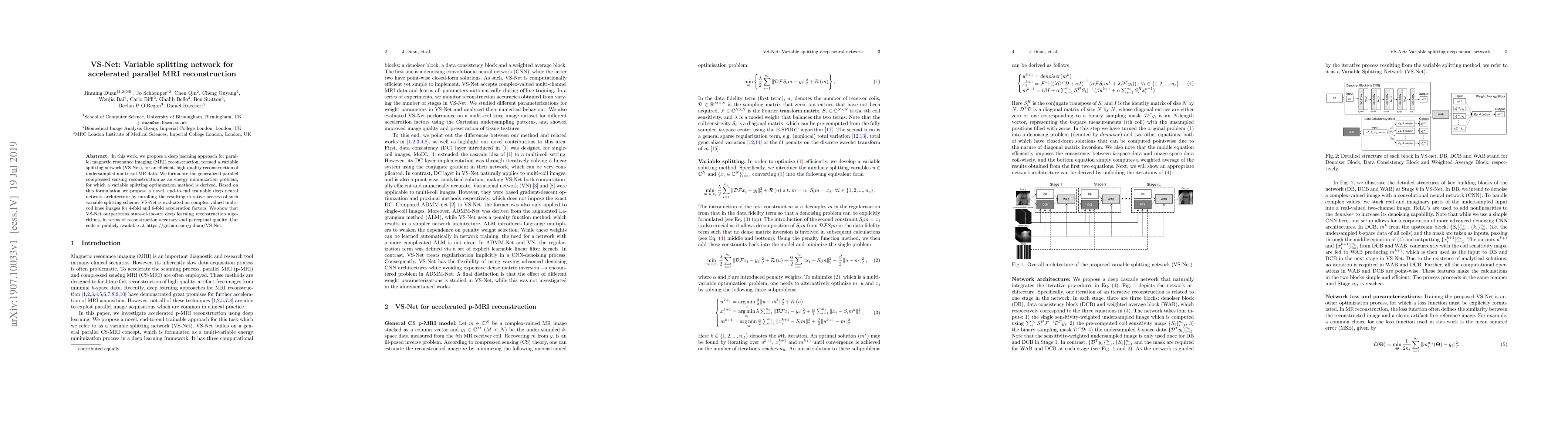 VS-Net is a deep learning method for parallel MRI reconstruction that accelerates the process by efficiently handling undersampled multi-coil data. It outperforms existing algorithms in reconstruction accuracy and quality, demonstrated through experiments on knee images with 4-fold and 6-fold acceleration.