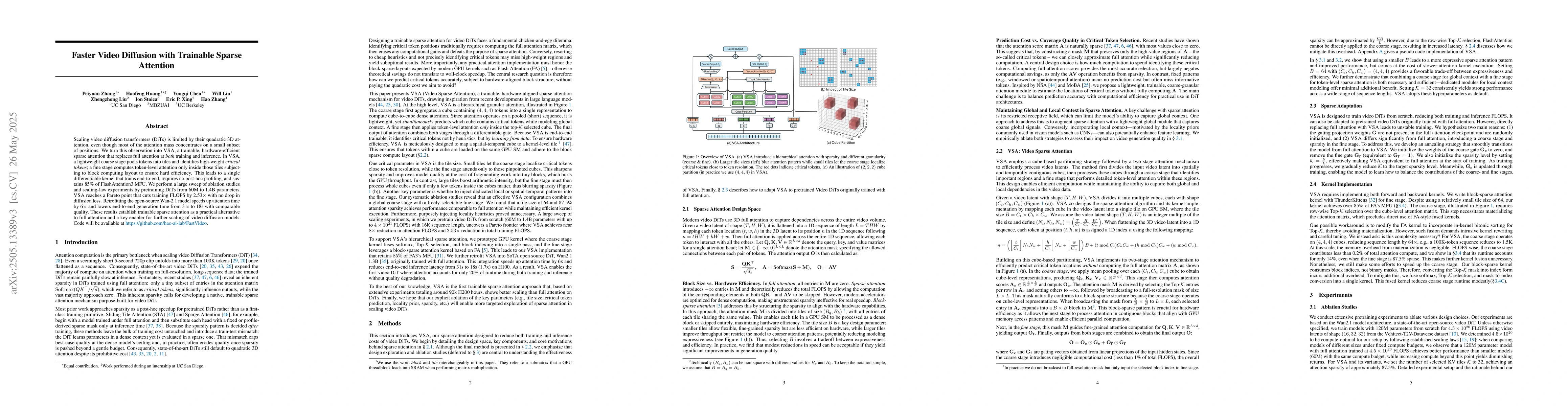 Researchers introduce VSA, a hardware-efficient sparse attention mechanism that speeds up video diffusion transformers by 2.53x without sacrificing quality, paving the way for further scaling of video diffusion models.