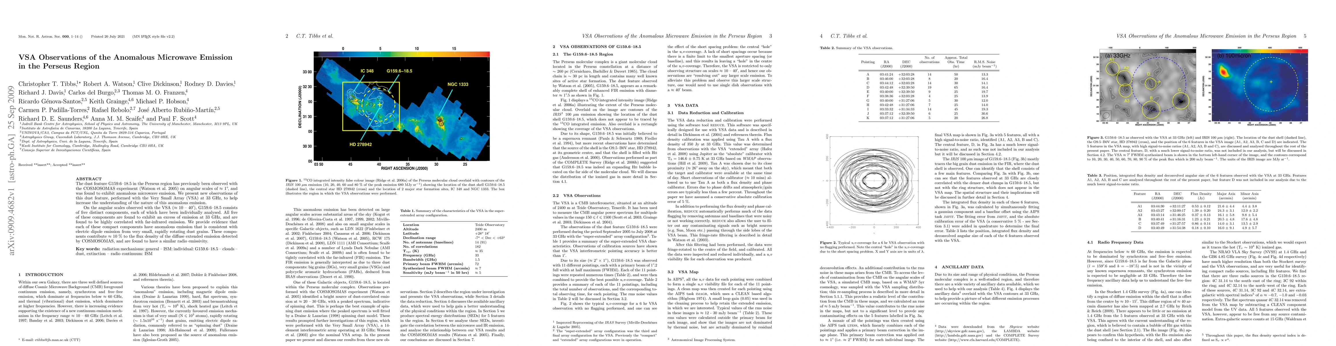 The VSA observations at 33 GHz reveal five distinct components in the dust feature G159.6--18.5 in the Perseus region, each exhibiting anomalous microwave emission correlated with far-infrared emission, suggesting electric dipole emission from rapidly rotating dust grains. These components contribute about 10% to the total flux density observed by COSMOSOMAS.