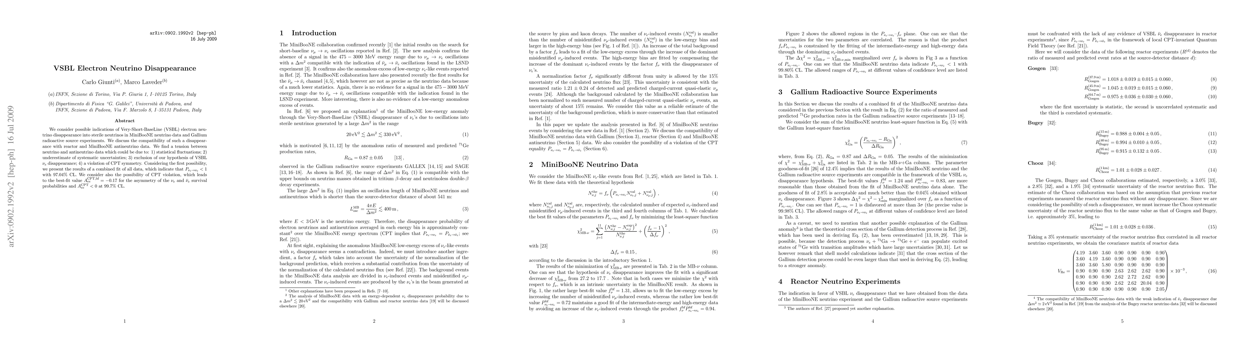 This paper investigates the potential for Very-Short-BaseLine (VSBL) electron neutrino disappearance into sterile neutrinos, analyzing MiniBooNE and Gallium source data. It finds a tension between neutrino and antineutrino data, suggesting possible statistical fluctuations, underestimated systematic uncertainties, or CPT symmetry violation.