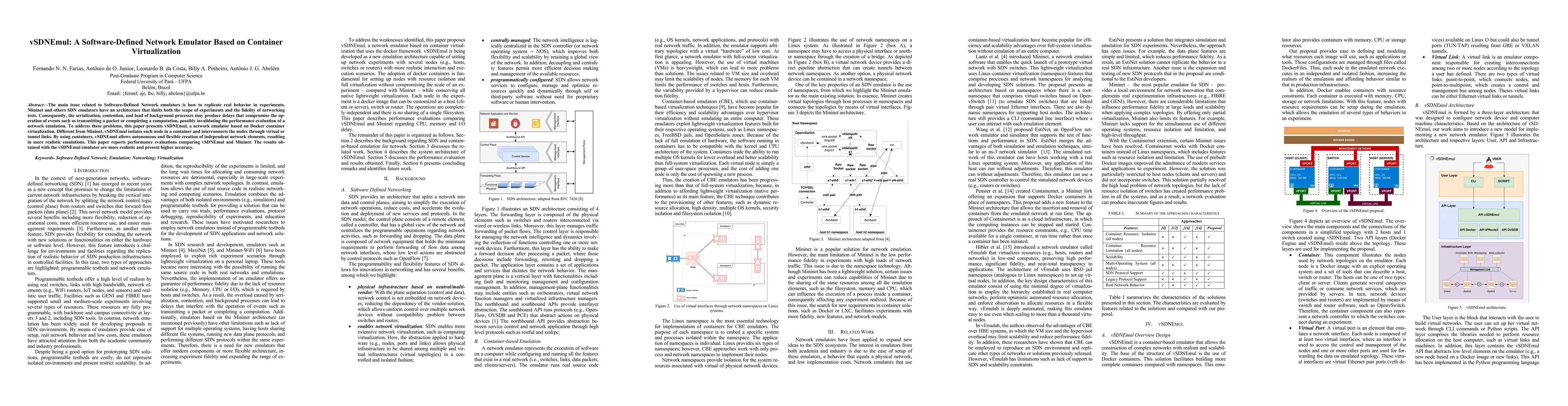vSDNEmul is a new Software-Defined Network emulator based on Docker container virtualization, designed to provide more realistic emulations by isolating each node in a container. Compared to Mininet, vSDNEmul demonstrates higher accuracy and better performance in network emulation experiments.