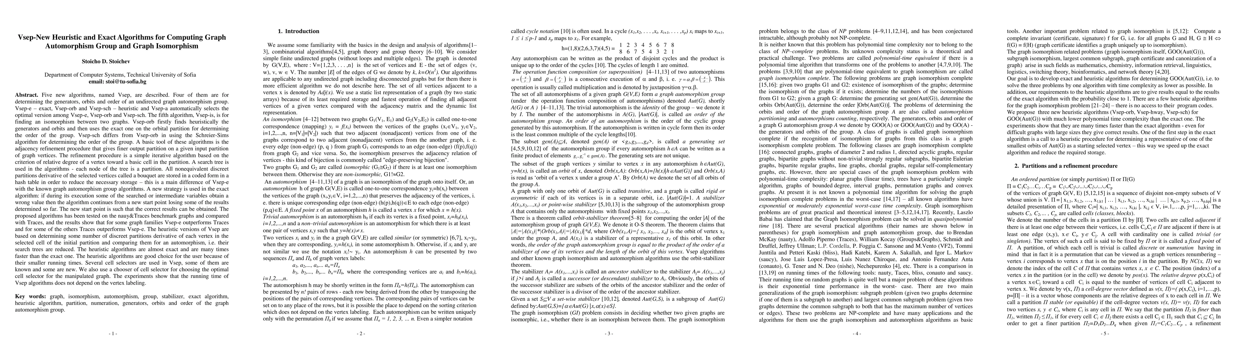 This paper presents an exact algorithm and two heuristic algorithms for computing the graph automorphism group, utilizing a search tree and individualization refinement procedure. The exact algorithm can restart from a new start point if errors are detected, while the heuristic algorithms are faster and use reduced search trees based on discret partitions. Experimental results show that the exact algorithm has exponential worst-case running time, whereas the heuristics run in polynomial time.
