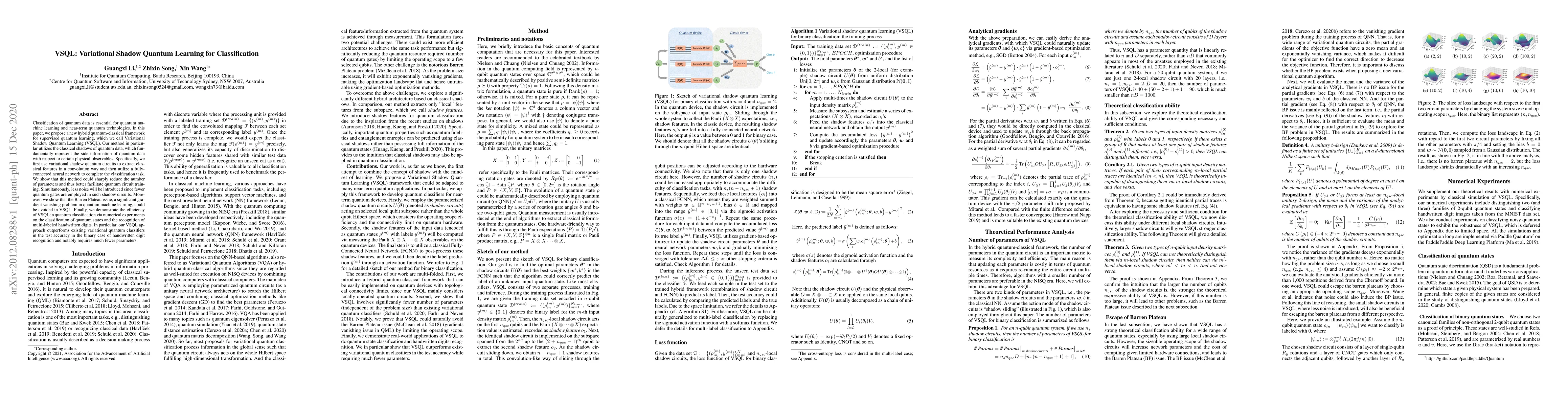A new hybrid quantum-classical framework, Variational Shadow Quantum Learning (VSQL), is proposed for supervised quantum learning, reducing parameters and noise in quantum circuit training while avoiding the Barren Plateau issue.