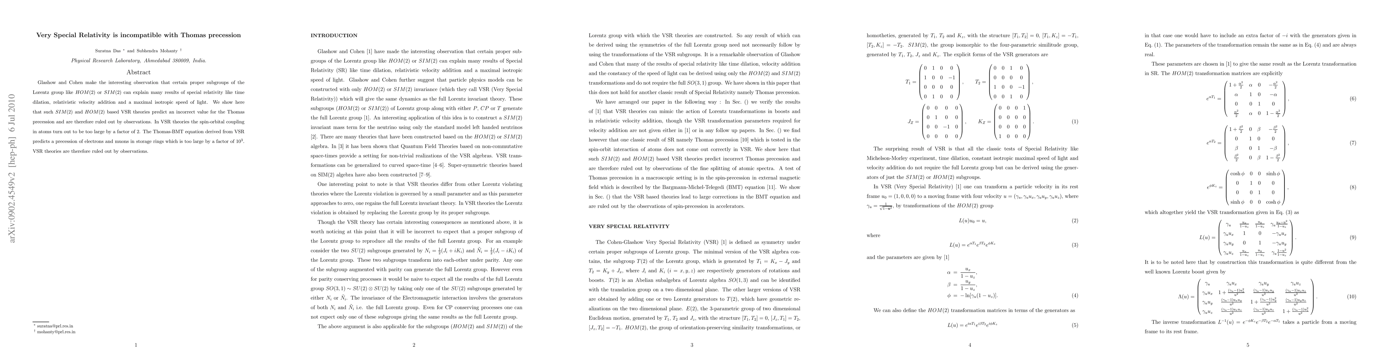 Glashow and Cohen make the interesting observation that certain proper subgroups of the Lorentz group like HOM(2) or SIM(2) can explain many results of special relativity like time dilation, relativistic velocity addition and a maximal isotropic speed of light. We show here that such SIM(2) and HOM(2) based VSR theories predict an incorrect value for the Thomas precession and are therefore ruled out by observations. In VSR theories the spin-orbital coupling in atoms turn out to be too large by a factor of 2. The Thomas-BMT equation derived from VSR predicts a precession of electrons and muons in storage rings which is too large by a factor of $10^3$. VSR theories are therefore ruled out by observations.