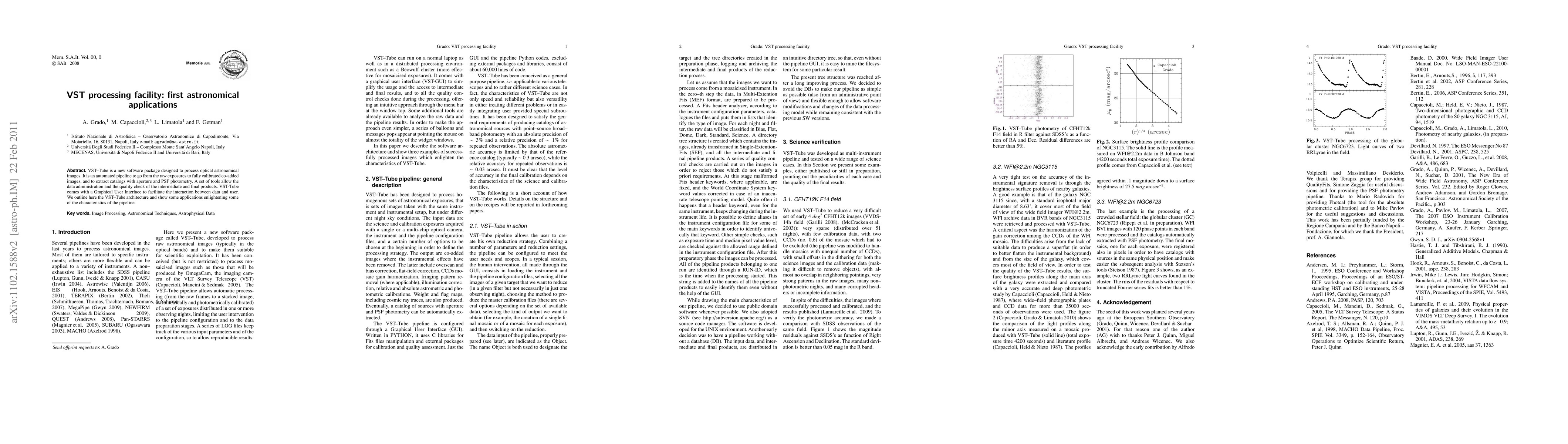 VST--Tube is a new software package designed to process optical astronomical images. It is an automated pipeline to go from the raw exposures to fully calibrated co-added images, and to extract catalogs with aperture and PSF photometry. A set of tools allow the data administration and the quality check of the intermediate and final products. VST-Tube comes with a Graphical User Interface to facilitate the interaction between data and user. We outline here the VST--Tube architecture and show some applications enlightening some of the characteristics of the pipeline.