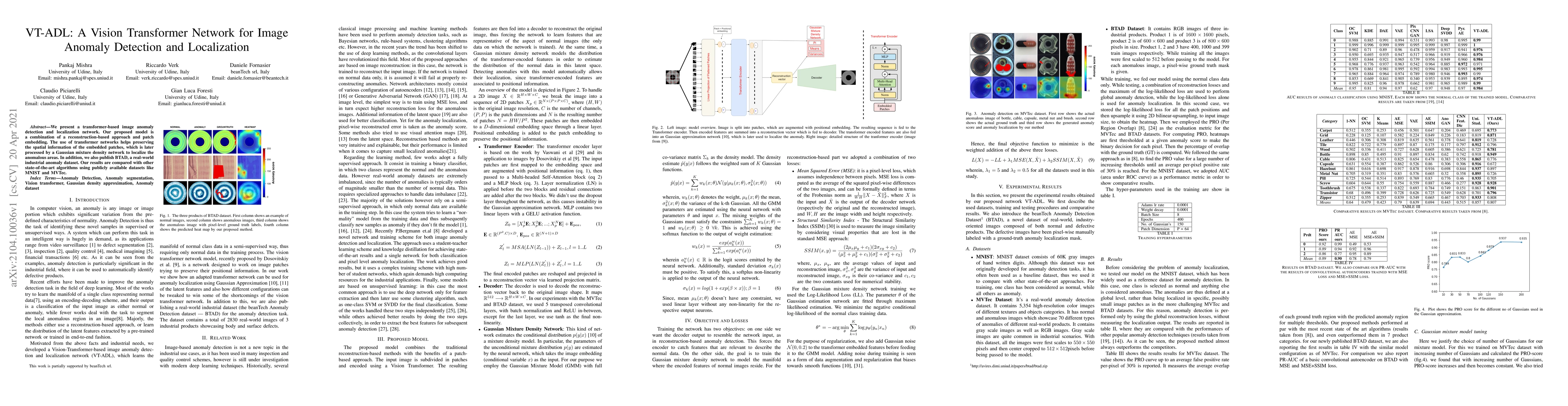 The paper introduces VT-ADL, a vision transformer network combining reconstruction-based anomaly detection with patch embedding to localize anomalies. The model outperforms other state-of-the-art algorithms on datasets like MNIST and MVTec, and introduces BTAD, a new industrial anomaly dataset.