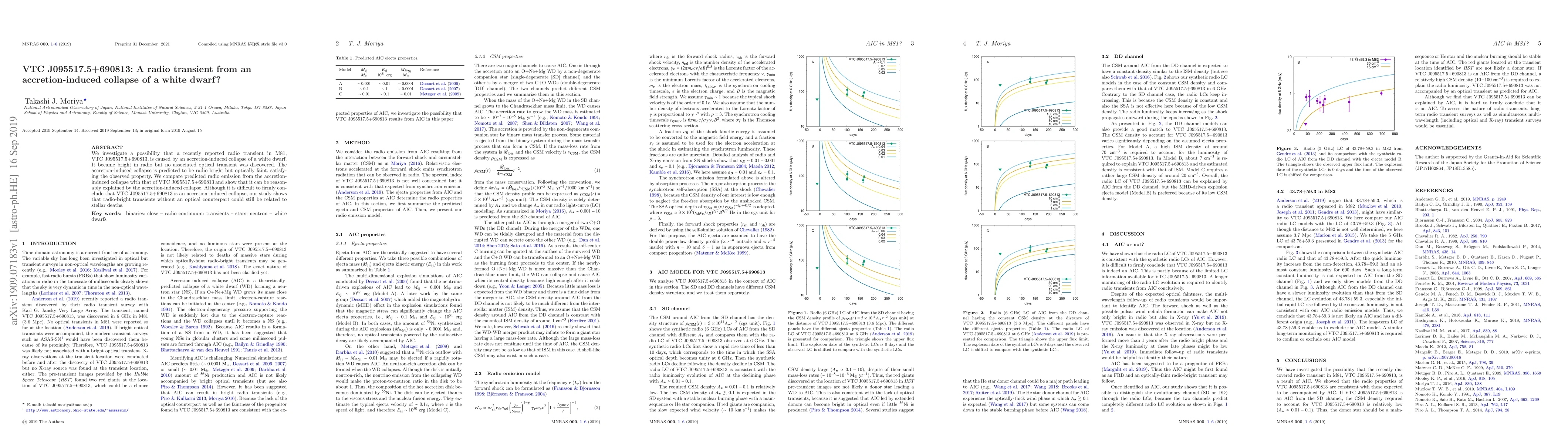 This paper explores the possibility that a radio transient in M81, VTC J095517.5+690813, results from an accretion-induced collapse of a white dwarf, noting its radio brightness without an optical counterpart, which aligns with theoretical predictions. While definitive conclusions are elusive, the study suggests that such radio-bright transients may be linked to stellar deaths.