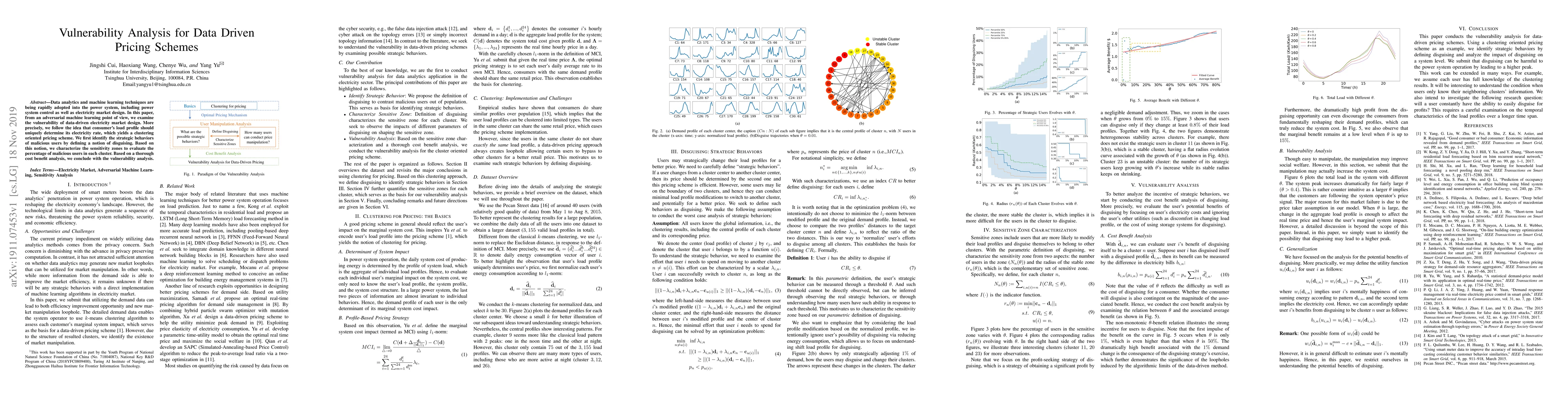 This paper analyzes the vulnerability of data-driven pricing schemes in electricity markets, identifying potential strategies for malicious users to disguise their load profiles and evade pricing based on their unique consumption patterns.