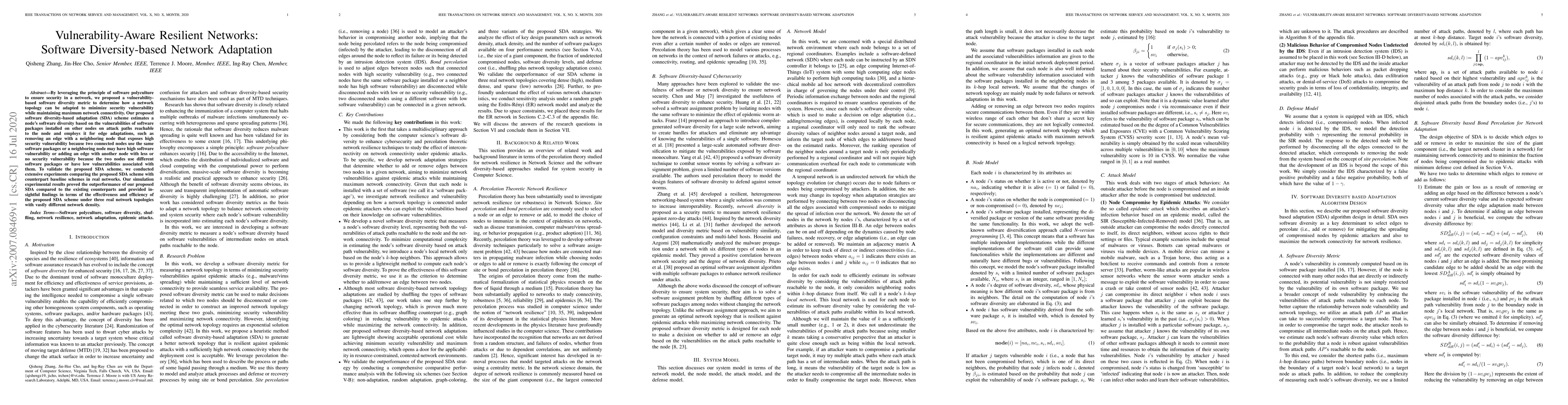 By leveraging the principle of software polyculture to ensure security in a network, we proposed a vulnerability-based software diversity metric to determine how a network topology can be adapted to minimize security vulnerability while maintaining maximum network connectivity. Our proposed software diversity-based adaptation (SDA) scheme estimates a node's software diversity based on the vulnerabilities of software packages installed on other nodes on attack paths reachable to the node and employs it for edge adaptations, such as removing an edge with a neighboring node that exposes high security vulnerability because two connected nodes use the same software packages or a neighboring node may have high software vulnerability or adding an edge with another node with less or no security vulnerability because the two nodes use different software packages or have low vulnerabilities associated with them. To validate the proposed SDA scheme, we conducted extensive experiments comparing the proposed SDA scheme with counterpart baseline schemes in real networks. Our simulation experimental results proved the outperformance of our proposed SDA compared to the existing counterparts and provided insightful findings in terms of the effectiveness and efficiency of the proposed SDA scheme under three real network topologies with vastly different network density.