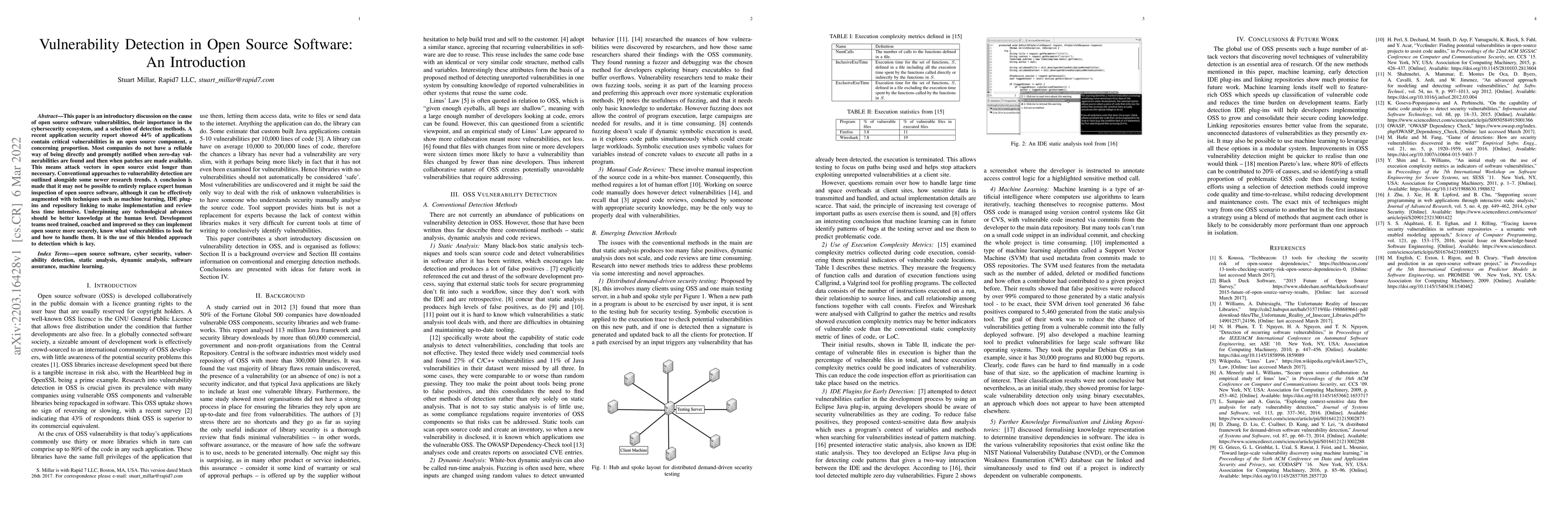 This paper introduces the causes and significance of vulnerabilities in open source software, highlighting the need for effective detection methods. It suggests that while technological advances can augment detection, human expertise remains crucial, advocating for a blended approach combining human training and automated tools.