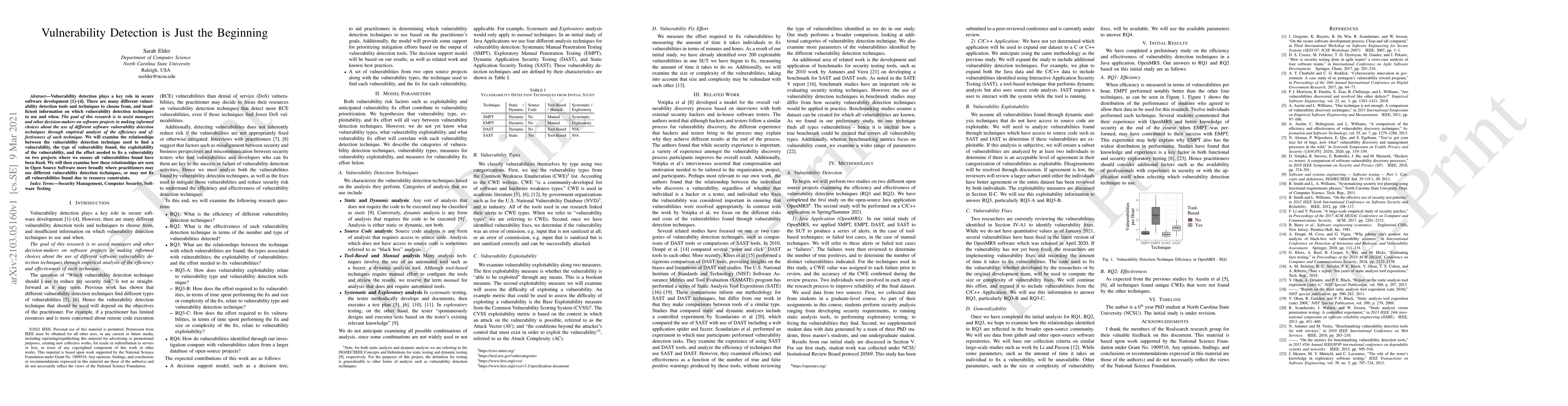 Vulnerability detection plays a key role in secure software development. There are many different vulnerability detection tools and techniques to choose from, and insufficient information on which vulnerability detection techniques to use and when. The goal of this research is to assist managers and other decision-makers on software projects in making informed choices about the use of different software vulnerability detection techniques through empirical analysis of the efficiency and effectiveness of each technique. We will examine the relationships between the vulnerability detection technique used to find a vulnerability, the type of vulnerability found, the exploitability of the vulnerability, and the effort needed to fix a vulnerability on two projects where we ensure all vulnerabilities found have been fixed. We will then examine how these relationships are seen in Open Source Software more broadly where practitioners may use different vulnerability detection techniques, or may not fix all vulnerabilities found due to resource constraints.