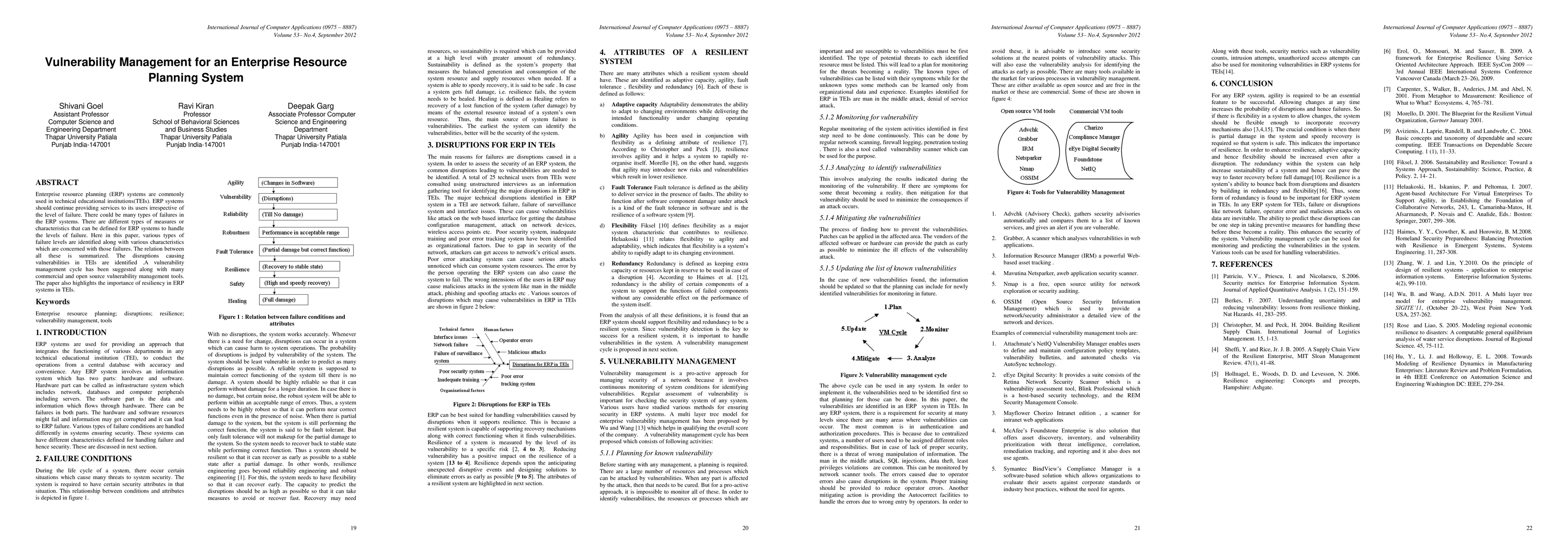 This paper identifies various failure levels in Enterprise Resource Planning (ERP) systems used in technical educational institutions and outlines characteristics for managing these failures. It proposes a vulnerability management cycle and discusses commercial and open-source tools, emphasizing the importance of resiliency in ERP systems.