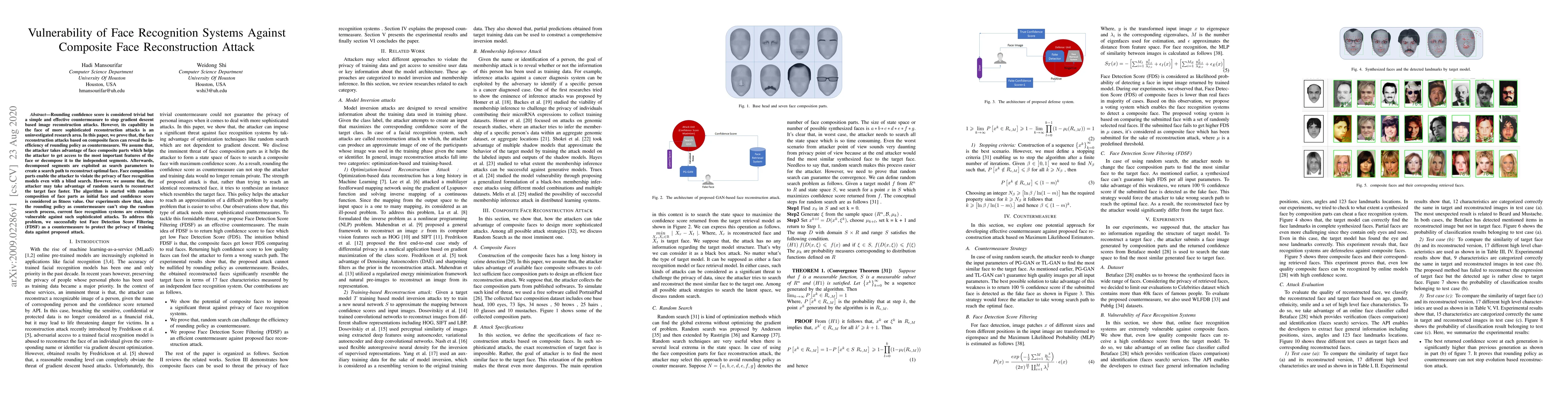 Face recognition systems can be vulnerable to composite face reconstruction attacks, even with countermeasures like rounding confidence scores. A new attack method using random search is shown to bypass such measures.