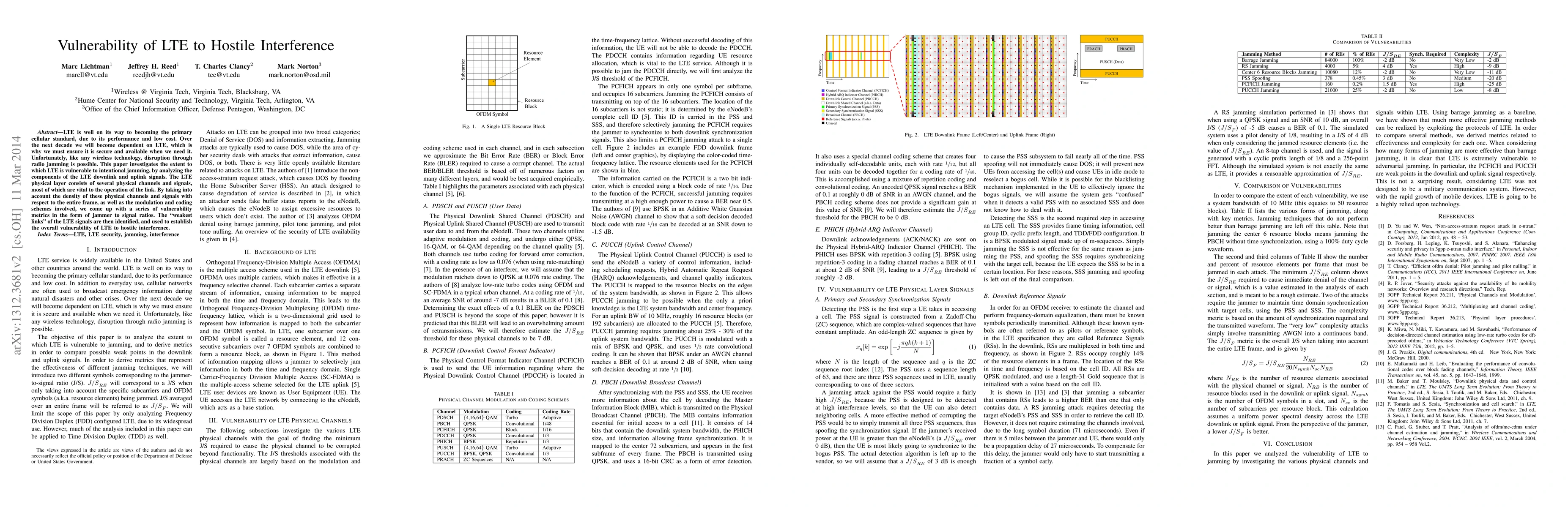 This paper assesses LTE vulnerability to intentional jamming by analyzing signal components and identifying the network's weakest links, which can help establish overall security against hostile interference. The study provides a framework for evaluating LTE resilience against radio jamming attacks.