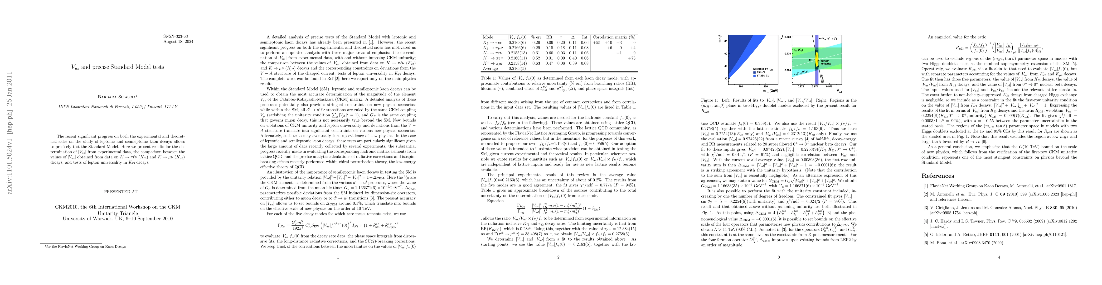 This paper presents precise determinations of the Vus parameter from experimental data on leptonic and semileptonic kaon decays, comparing these values and testing lepton universality to validate the Standard Model.