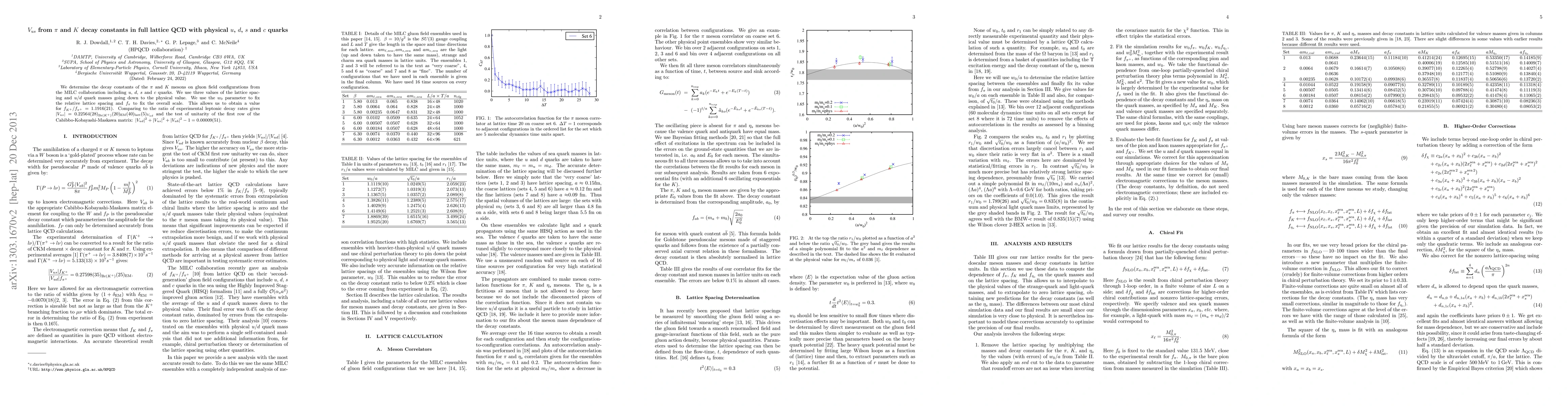 We determine the decay constants of the pi and K mesons on gluon field configurations from the MILC collaboration including u, d, s and c quarks. We use three values of the lattice spacing and u/d quark masses going down to the physical value. We use the w_0 parameter to fix the relative lattice spacing and f_pi to fix the overall scale. This allows us to obtain a value for f{K^+}/f{pi^+} = 1.1916(21). Comparing to the ratio of experimental leptonic decay rates gives |Vus| = 0.22564(28){Br(K^+)}(20){EM}(40){latt}(5){Vud} and the test of unitarity of the first row of the Cabibbo-Kobayashi-Maskawa matrix: |Vud|^2+|Vus|^2+|Vub|^2 - 1 = 0.00009(51).