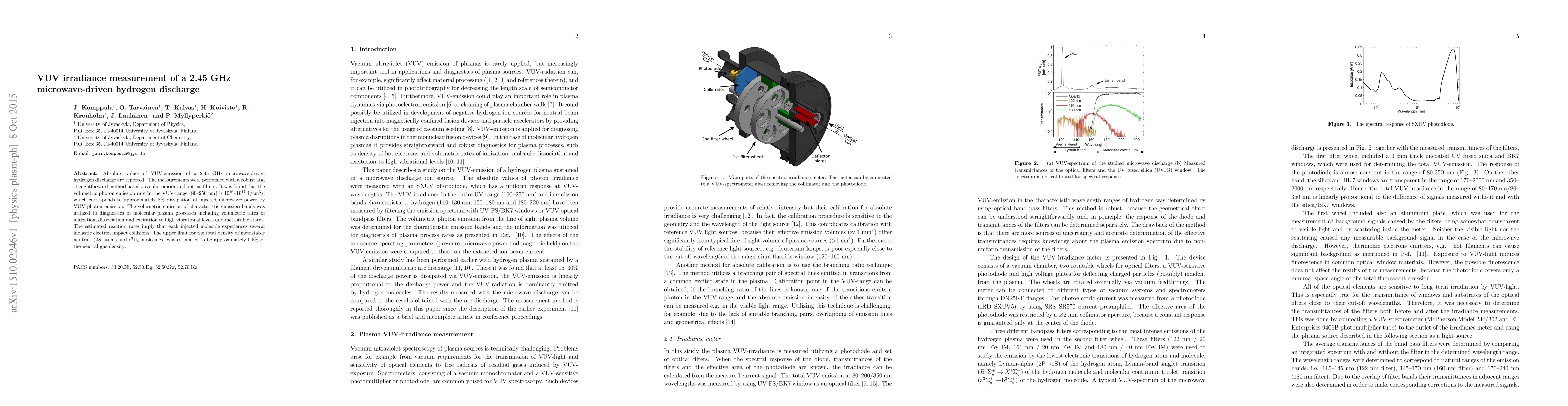 Absolute values of VUV-emission of a 2.45 GHz microwave-driven hydrogen discharge are reported. The measurements were performed with a robust and straightforward method based on a photodiode and optical filters. It was found that the volumetric photon emission rate in the VUV-range (80-250 nm) is $10^{16}$-$10^{17}$ 1/cm$^3$s, which corresponds to approximately 8% dissipation of injected microwave power by VUV photon emission. The volumetric emission of characteristic emission bands was utilized to diagnostics of molecular plasma processes including volumetric rates of ionization, dissociation and excitation to high vibrational levels and metastable states. The estimated reaction rates imply that each injected molecule experiences several inelastic electron impact collisions. The upper limit for the total density of metastable neutrals ($2S$ atoms and $c^3\Pi_u$ molecules) was estimated to be approximately 0.5% of the neutral gas density.