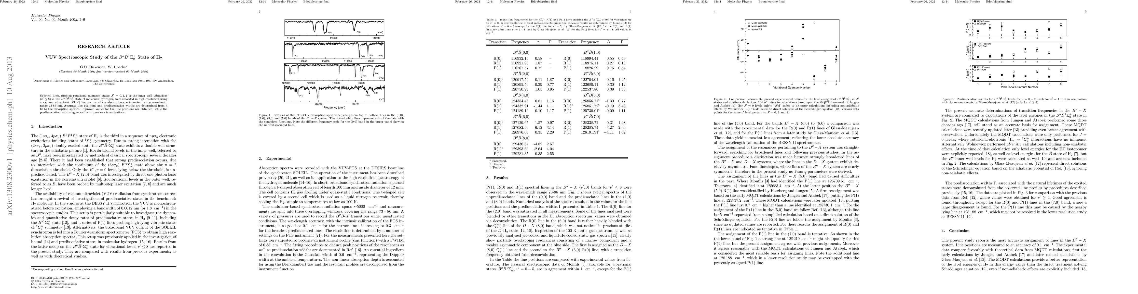 The research paper presents a VUV spectroscopic study of the BB" 1Su+ state in molecular hydrogen, identifying spectral lines for J'=0,1,2 vibrational states (v'=<8). Utilizing a high-resolution Fourier transform absorption spectrometer, the study determines accurate line positions and predissociation widths, improving previous measurements and confirming earlier predissociation width findings.
