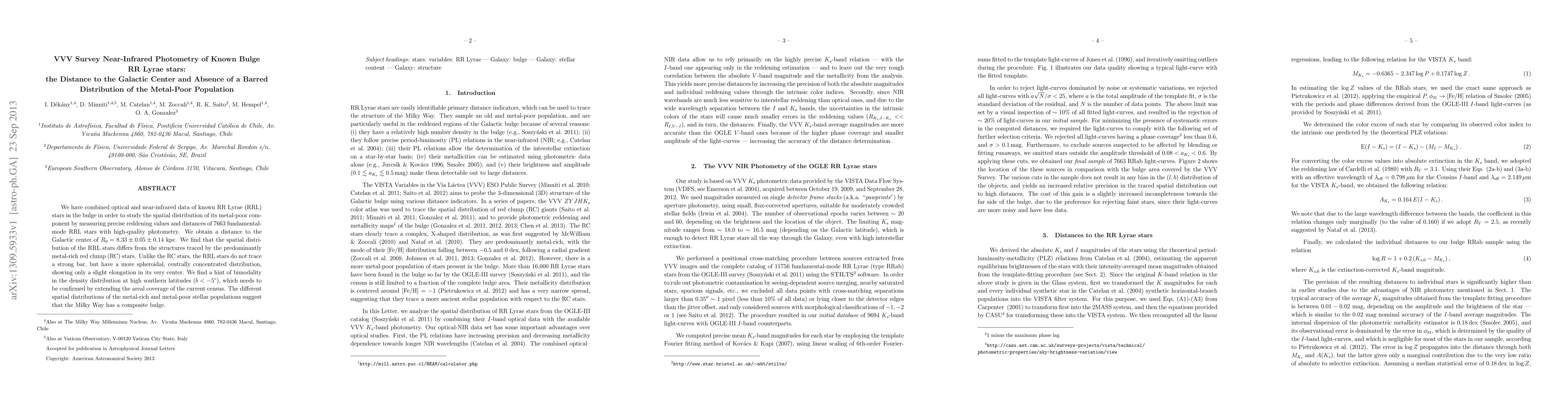 This study combines optical and near-infrared data of RR Lyrae stars to determine the Galactic center's distance at 8.33 ± 0.05 ± 0.14 kpc, revealing a composite bulge structure with metal-poor stars showing a spheroidal distribution rather than a barred one.