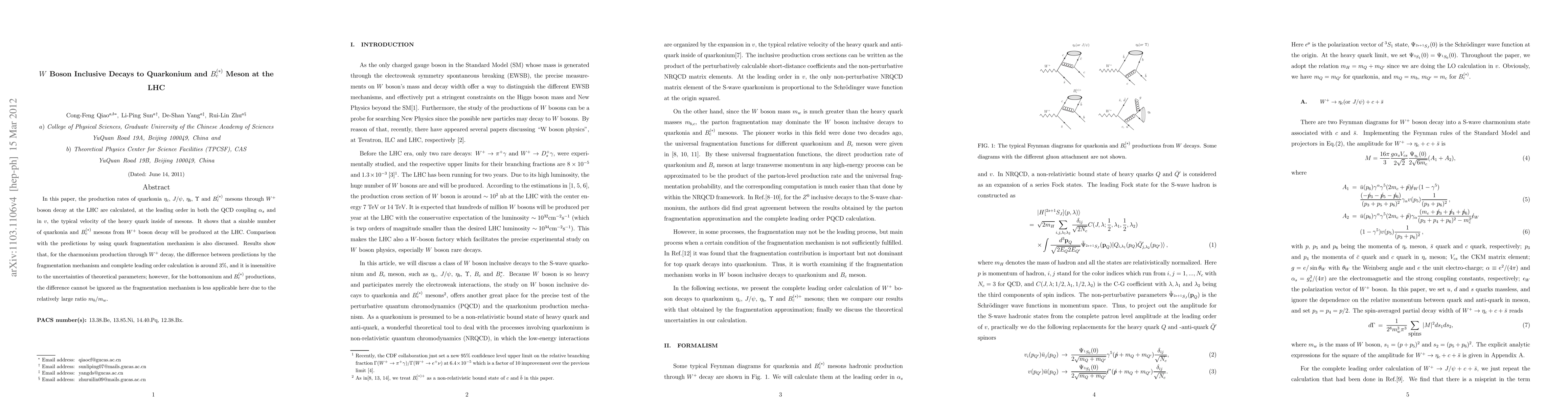 This paper calculates the production rates of quarkonia via W boson decays at the LHC, finding significant production of quarkonia from W bosons. The study compares these results with predictions from quark fragmentation, showing a small discrepancy of about 3% for charmonium but larger discrepancies for bottomonium and B_c^* due to the inapplicability of the fragmentation mechanism in these cases.
