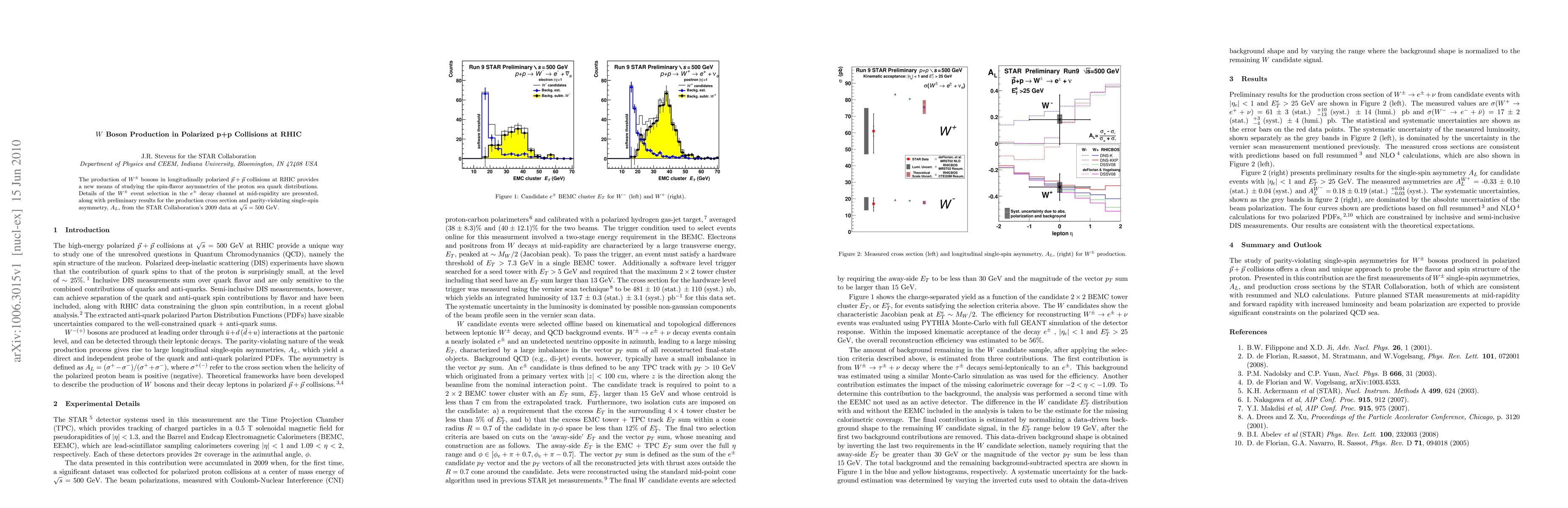 This study investigates $W^{\pm}$ boson production in longitudinally polarized proton-proton collisions at RHIC, aiming to reveal spin-flavor asymmetries in proton sea quarks. The paper presents preliminary results for the production cross section and parity-violating single-spin asymmetry $A_L$ from STAR Collaboration data at 500 GeV.