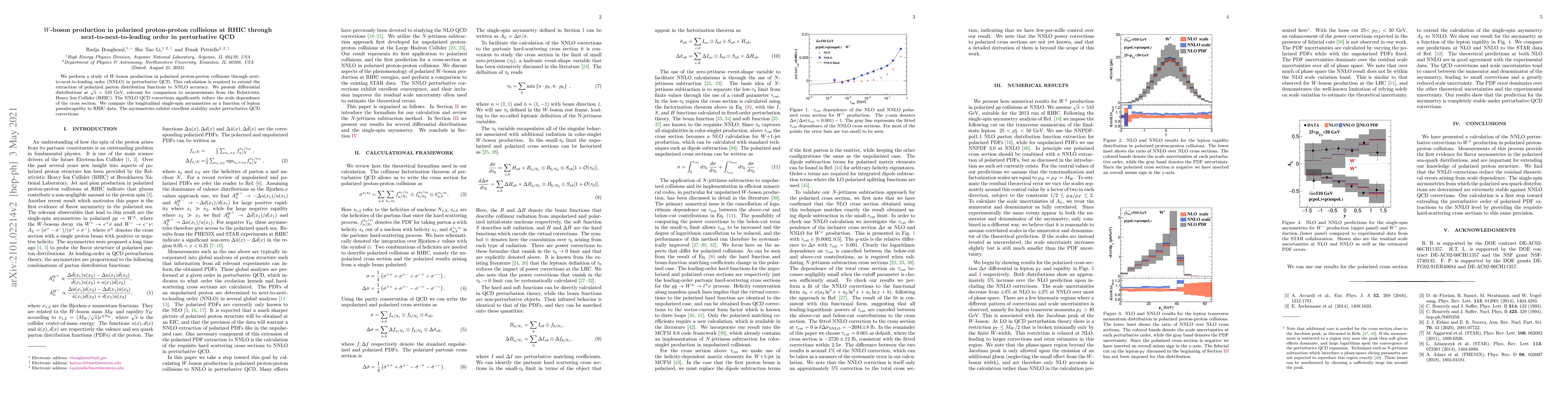 This study investigates $W$-boson production in polarized proton-proton collisions at RHIC through next-to-next-to-leading order (NNLO) in perturbative QCD, providing differential distributions at $\sqrt{s}=510$ GeV. The NNLO QCD corrections notably reduce cross section scale dependence and show stable longitudinal single-spin asymmetries compared to RHIC data.