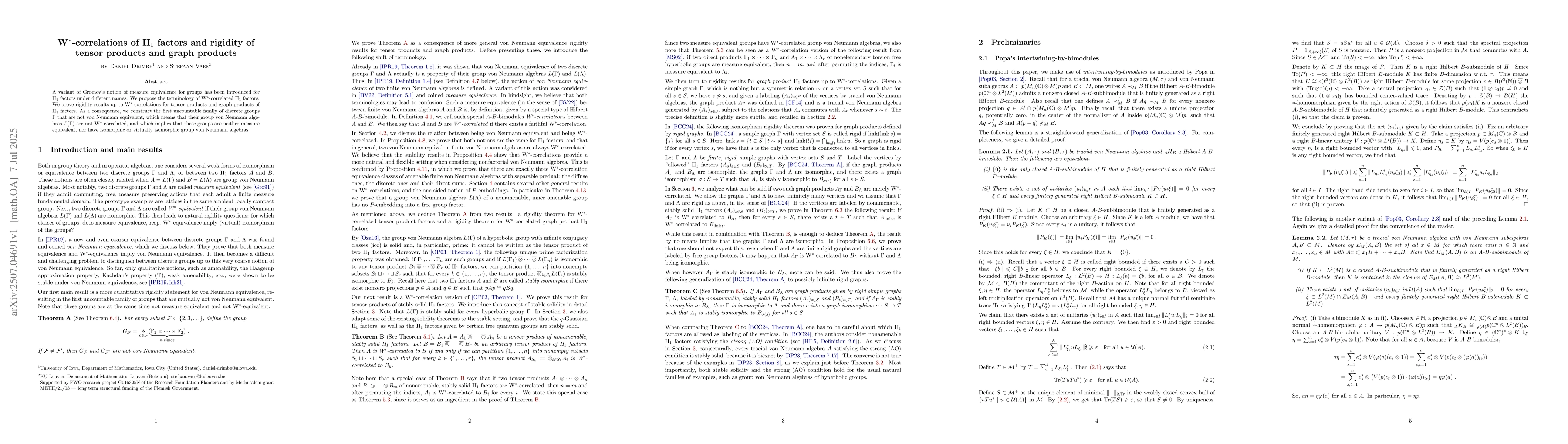 A variant of Gromov's notion of measure equivalence for groups has been introduced for II$_1$ factors under different names. We propose the terminology of W*-correlated II$_1$ factors. We prove rigidity results up to W*-correlations for tensor products and graph products of II$_1$ factors. As a consequence, we construct the first uncountable family of discrete groups $\Gamma$ that are not von Neumann equivalent, which means that their group von Neumann algebras $L(\Gamma)$ are not W*-correlated, and which implies that these groups are neither measure equivalent, nor have isomorphic or virtually isomorphic group von Neumann algebras.